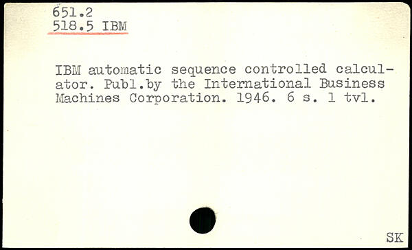 IBM automatic sequence controlled calculator. Publ.By the International Business Machines Corporation. 1946.