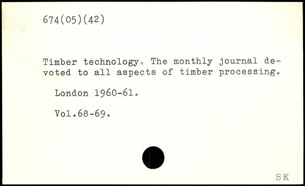 Timber technology,, The monthly journal de-voted to all aspects of timber processing.