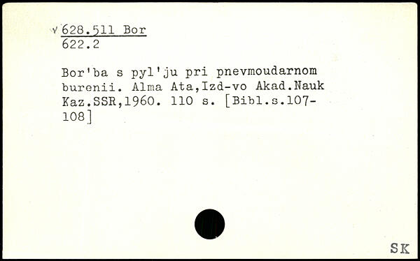Bor'ba s pyl'ju pri pnevmoudarnom burenii. Alma Ata,Izd-vo Akad.Nauk Kaz.SSR,1960.