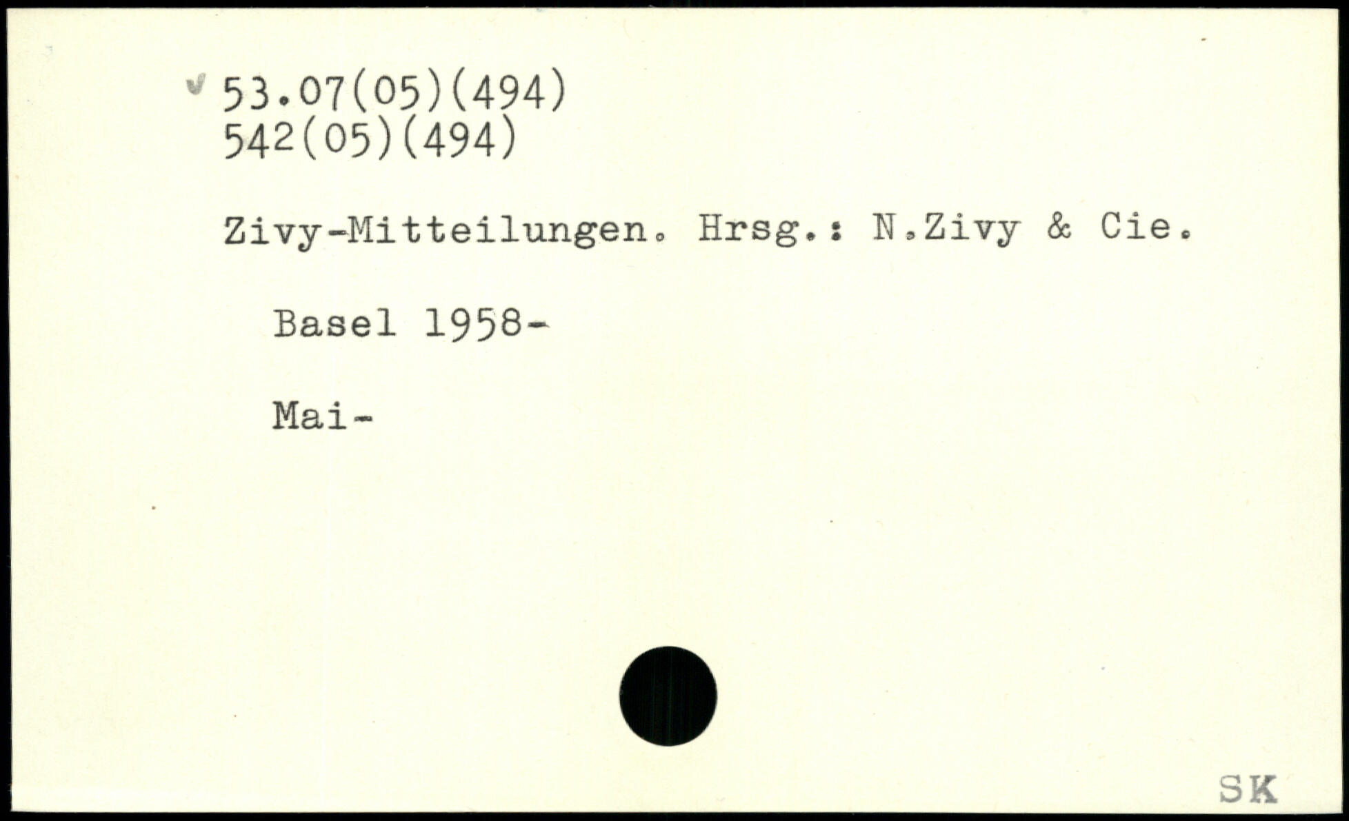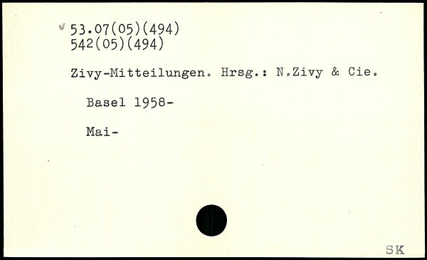Zivy-Mitteilungen. Hrsg.: N.Zivy & Cie.