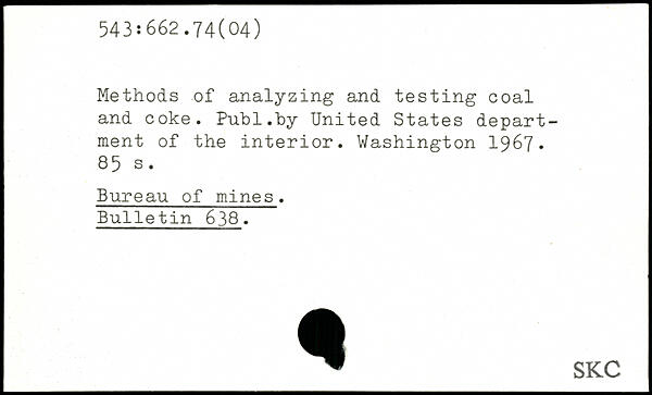 Methods of analyzing and testing coal and coke. Publ.hy United States department of the interior.