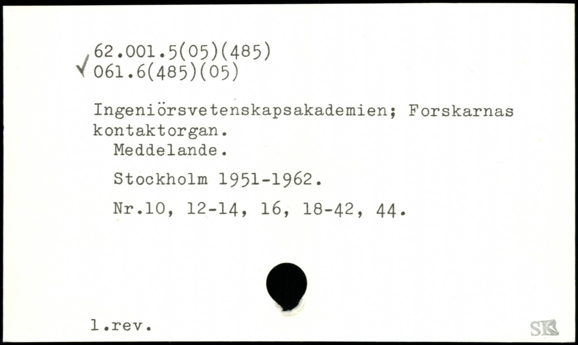 Ingeniörsve tenskapsakademien; Forskarnas kontaktorgan. Meddelande.