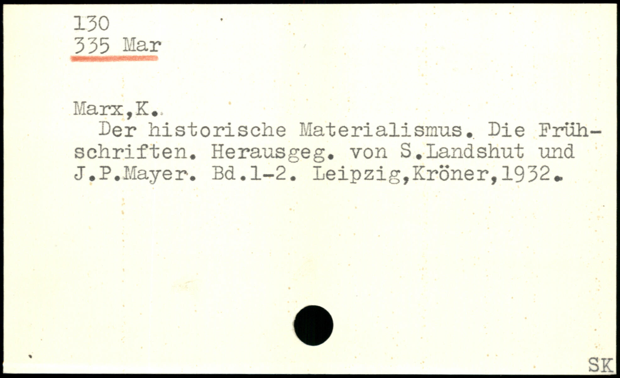 ler lii stori sch e Mat e ri ali smus. lie Fruh-sehriften. Herausgeg. von S.Landshut und J.P.Mayer.