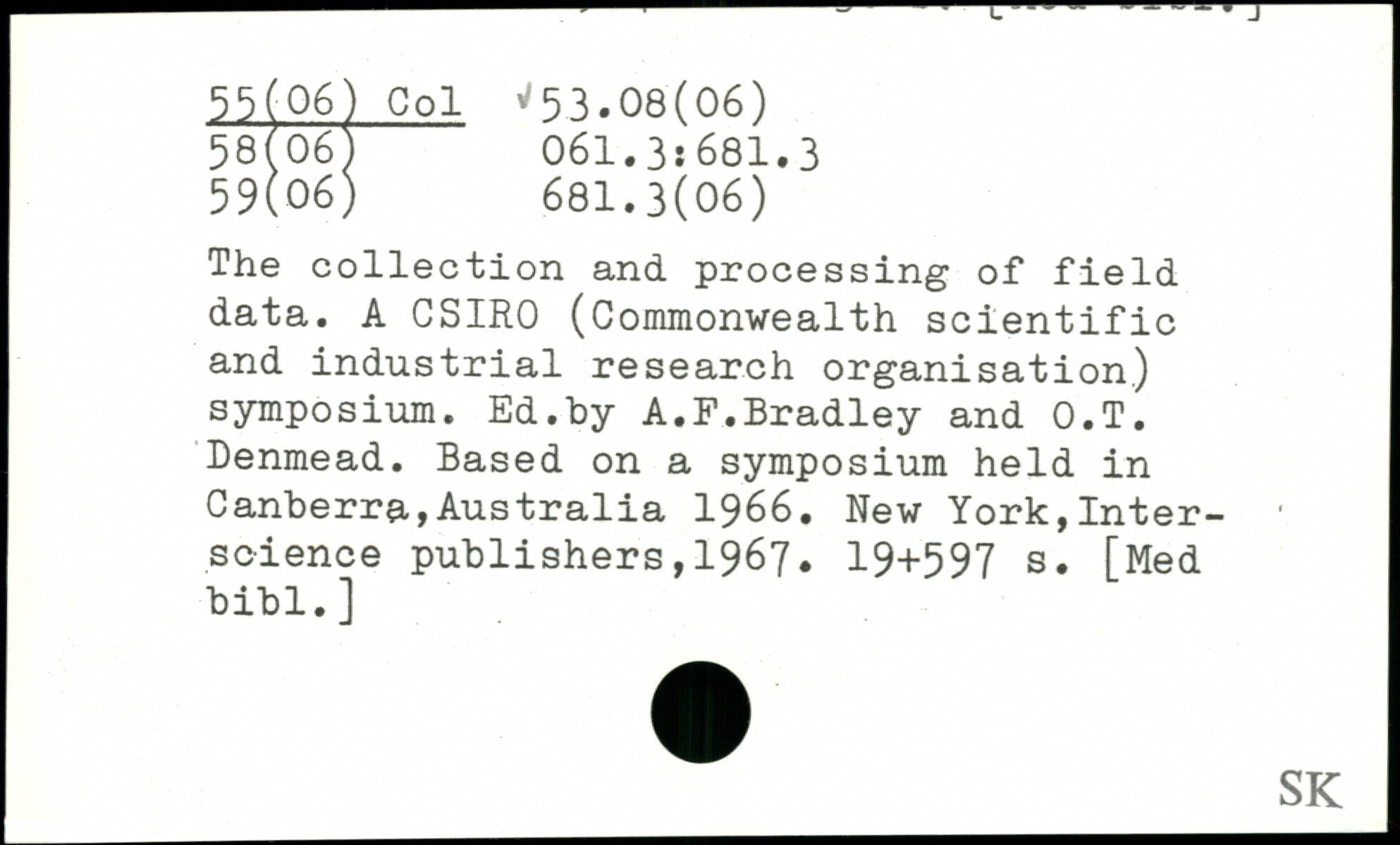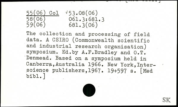 The collection and processing of field data. A CSIR0 (Commonwealth scientific and industrial research organisation) symposium. Ed.by A.F.Bradley and O.T. Denmead. Based on a symposium held in Canberra,Australia 1966.