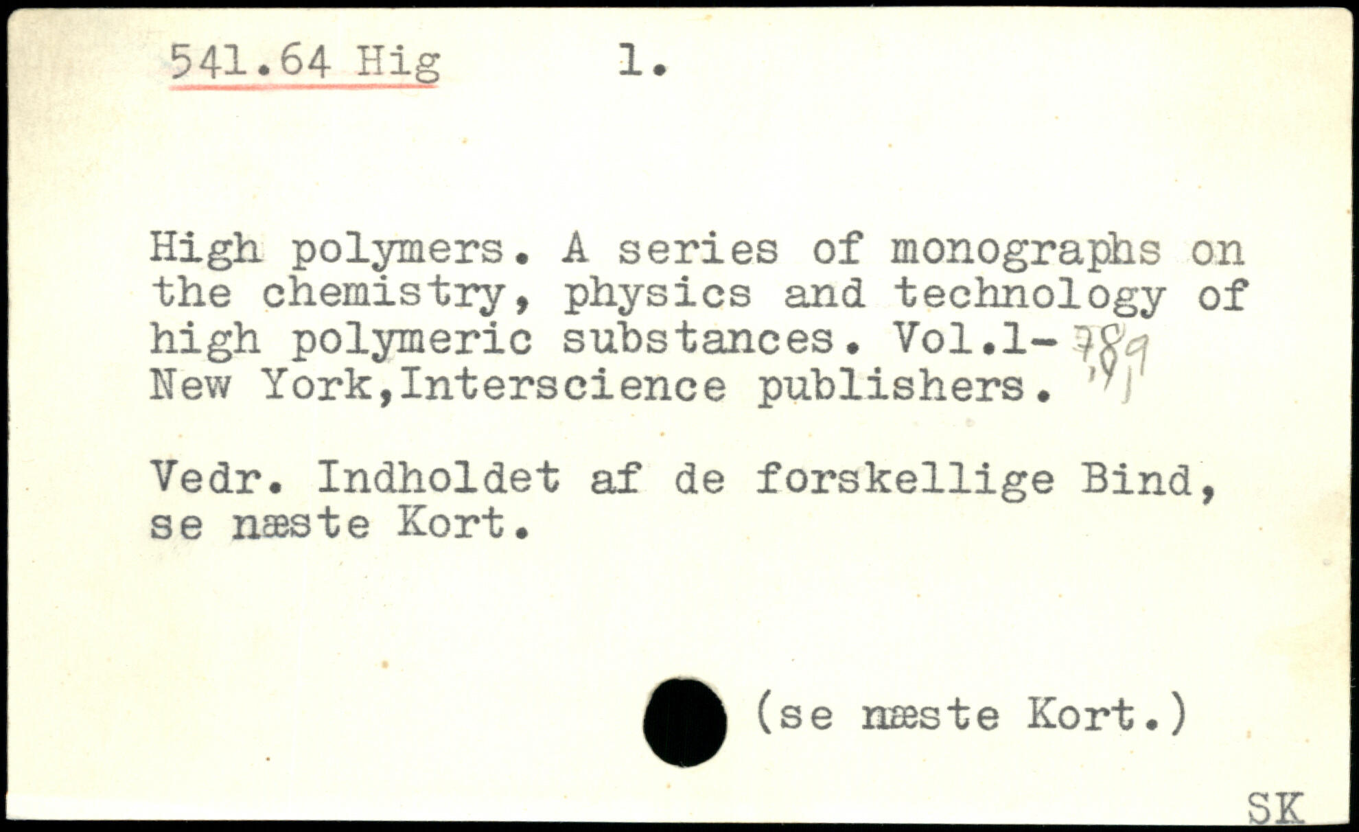 High polymers. A series of monographs on the chemistry, physics and technology of high polymeric substances. Vol.l-New York,Interscience publishers, '"j Vedr. Indholdet af de forskellige Bind, se næste Kort.