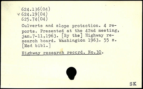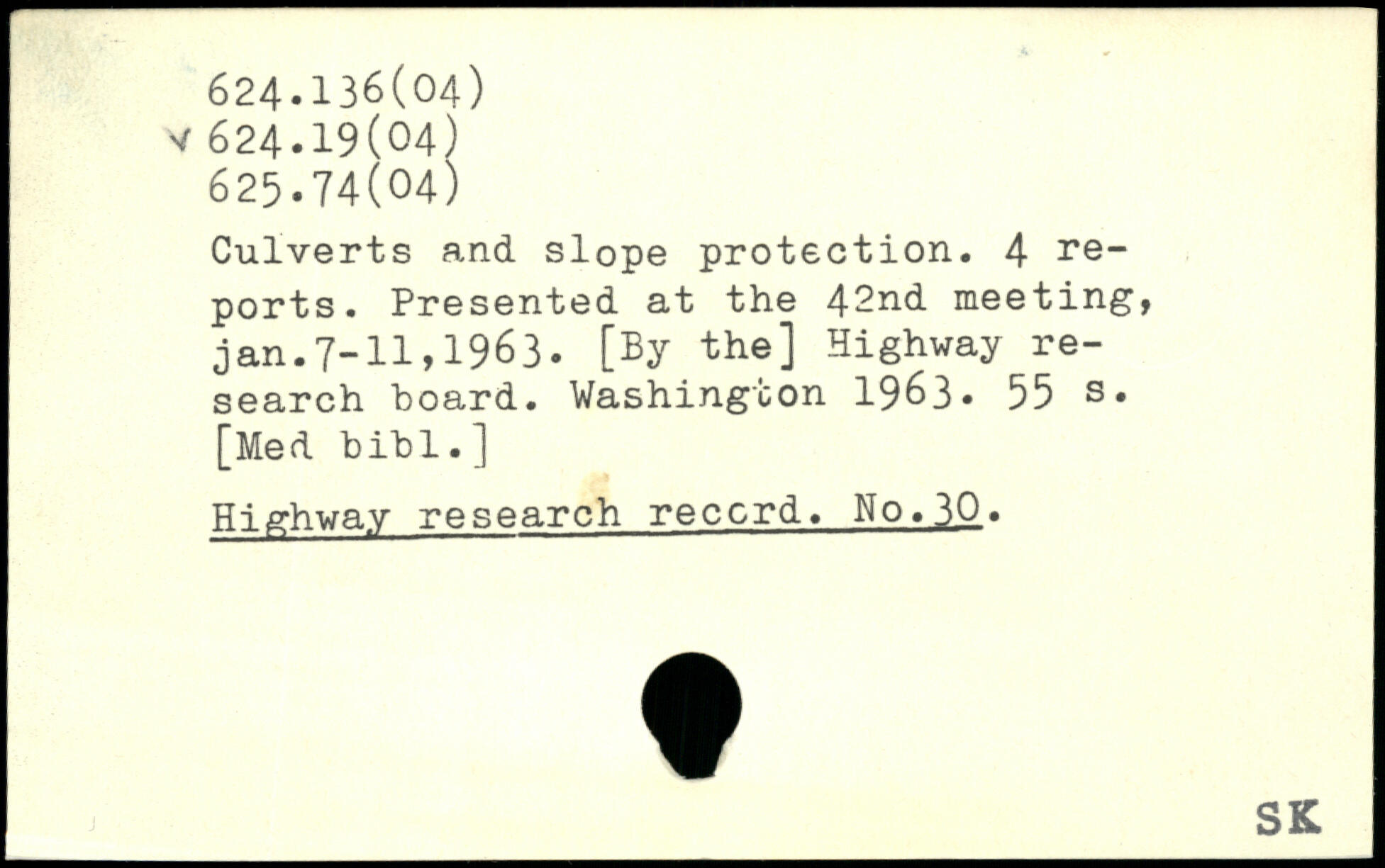 Culverts and slope protection. 4 re-ports. Presented at the 42nd meeting, jan.7-11,1963. [By the] Highway research hoard.