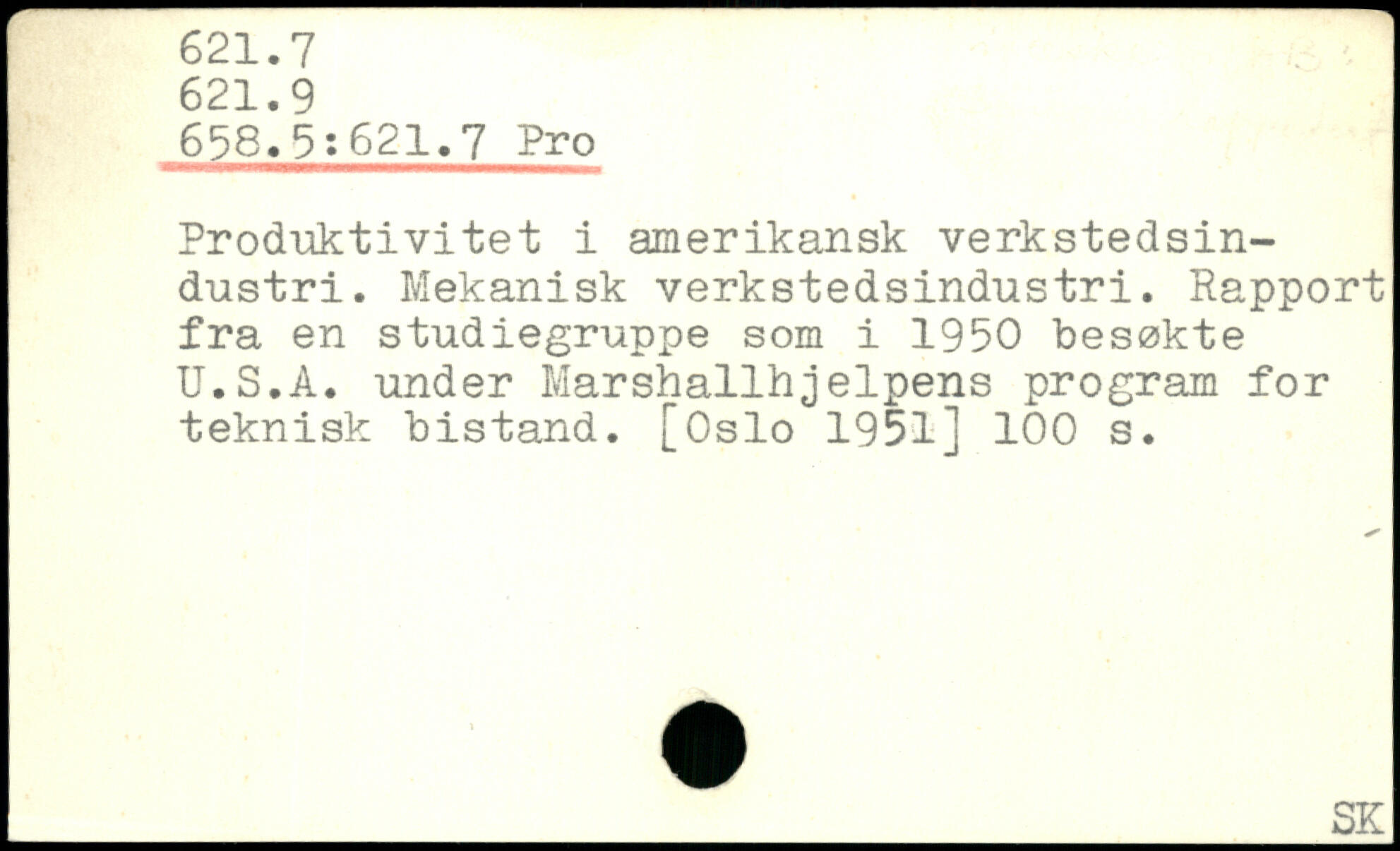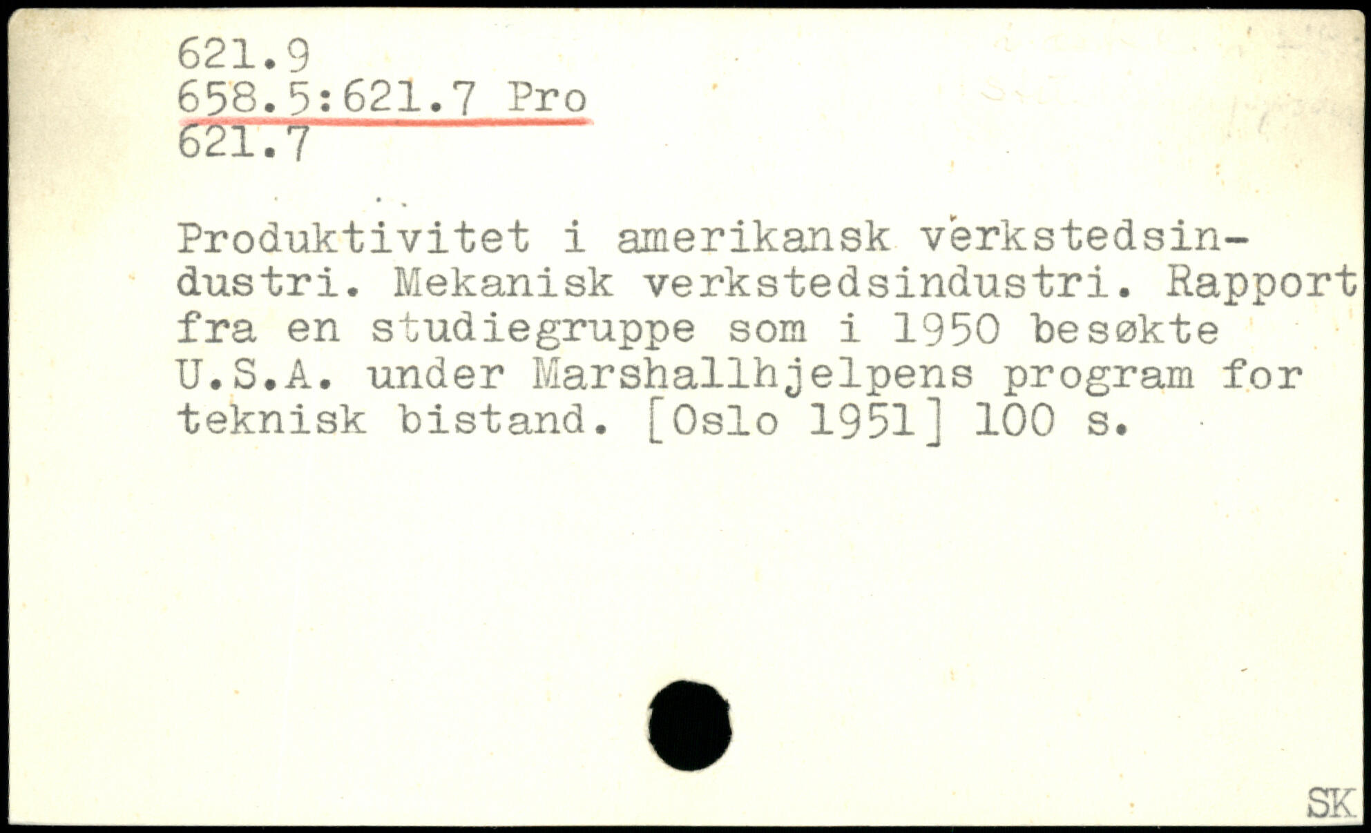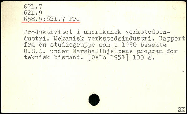 Produktivitet i amerikansk vérkstedsin-dustri. Mekanisk verkstedsindustri. Rapport fra en studiegruppe som i 1950 besøkte U.S.A. under Marshallhjelpens program for teknisk bistand. [Oslo 1951]