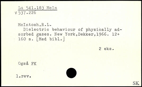 Dielectric behaviour of physically adsorbed gases.