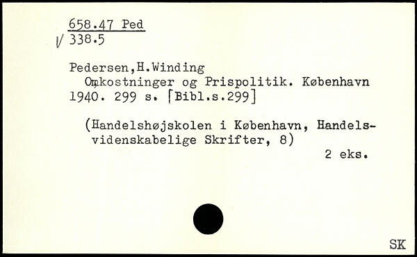 Pedersen,H.Winding Omkostninger og Prispolitik.