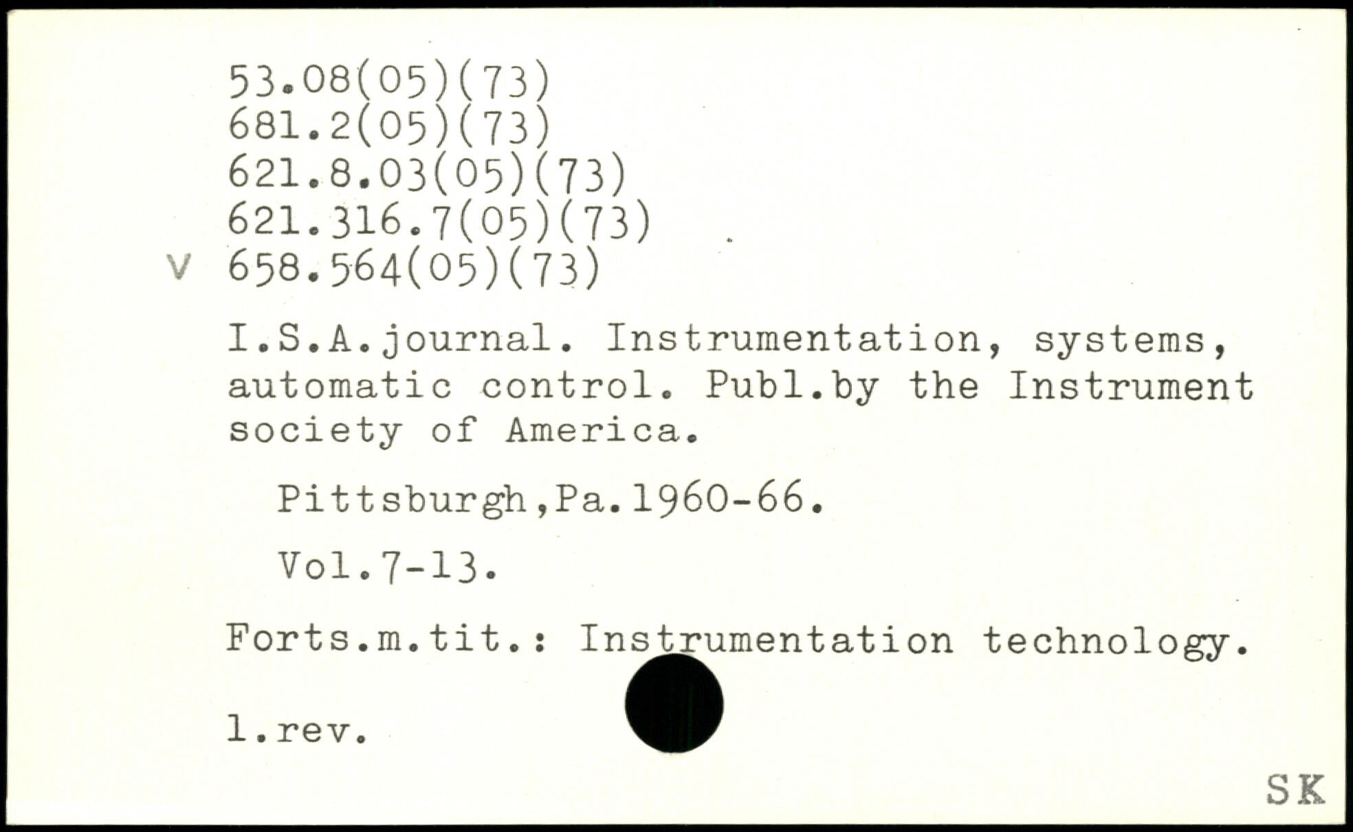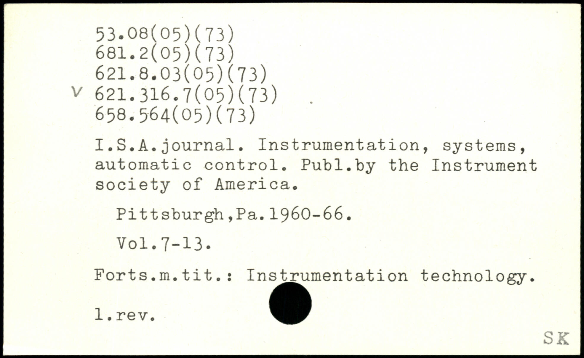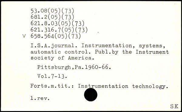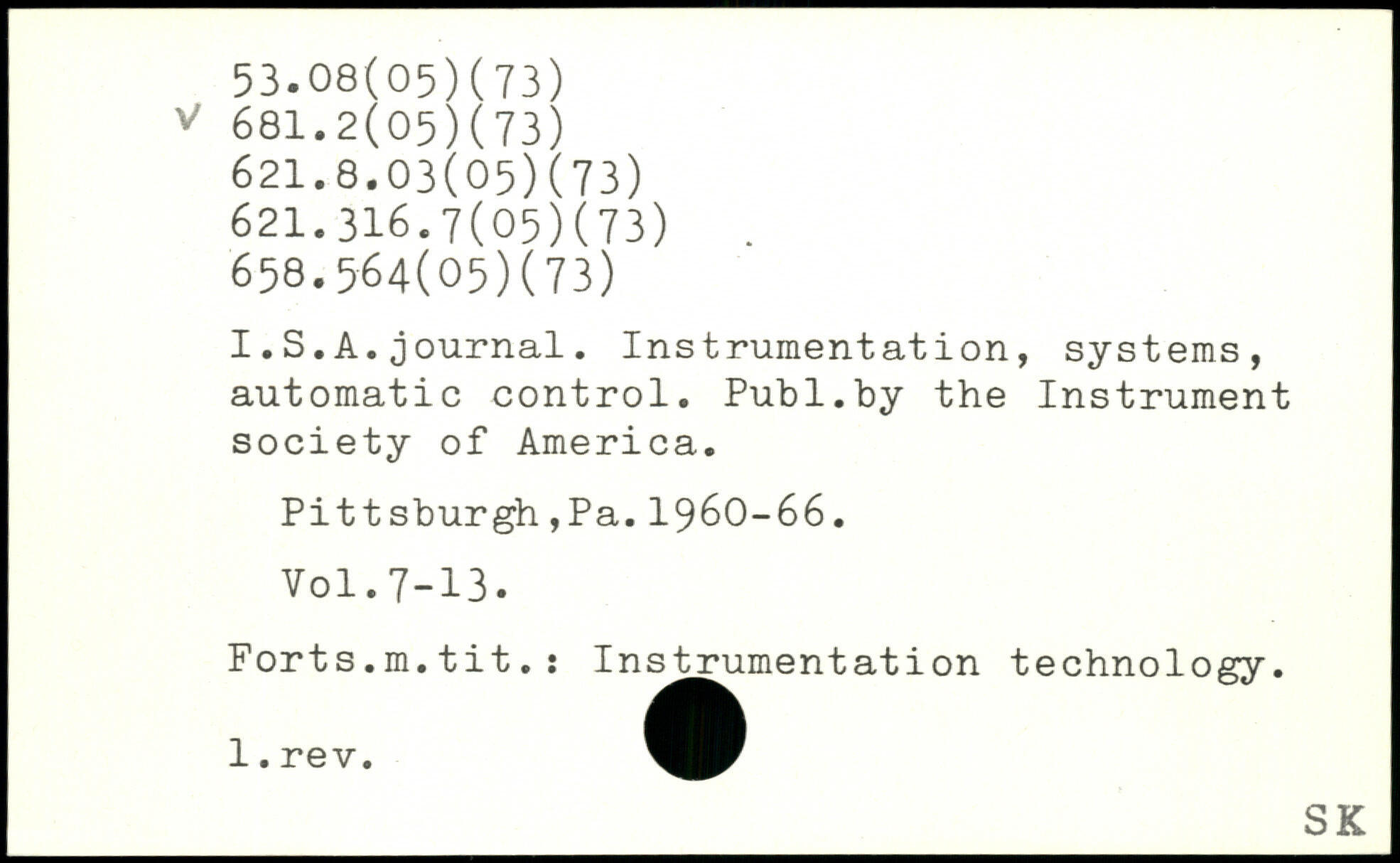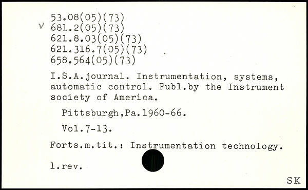 I.S.A.journal. Instrumentation, systems, automatic control.