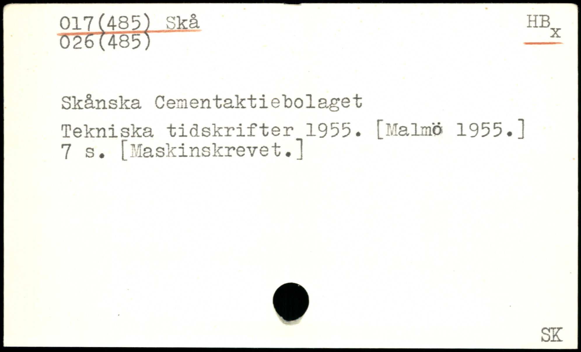 Skånska Cementaktiebolaget Tekniska tidskrifter 1955. [Malmö 1955.]