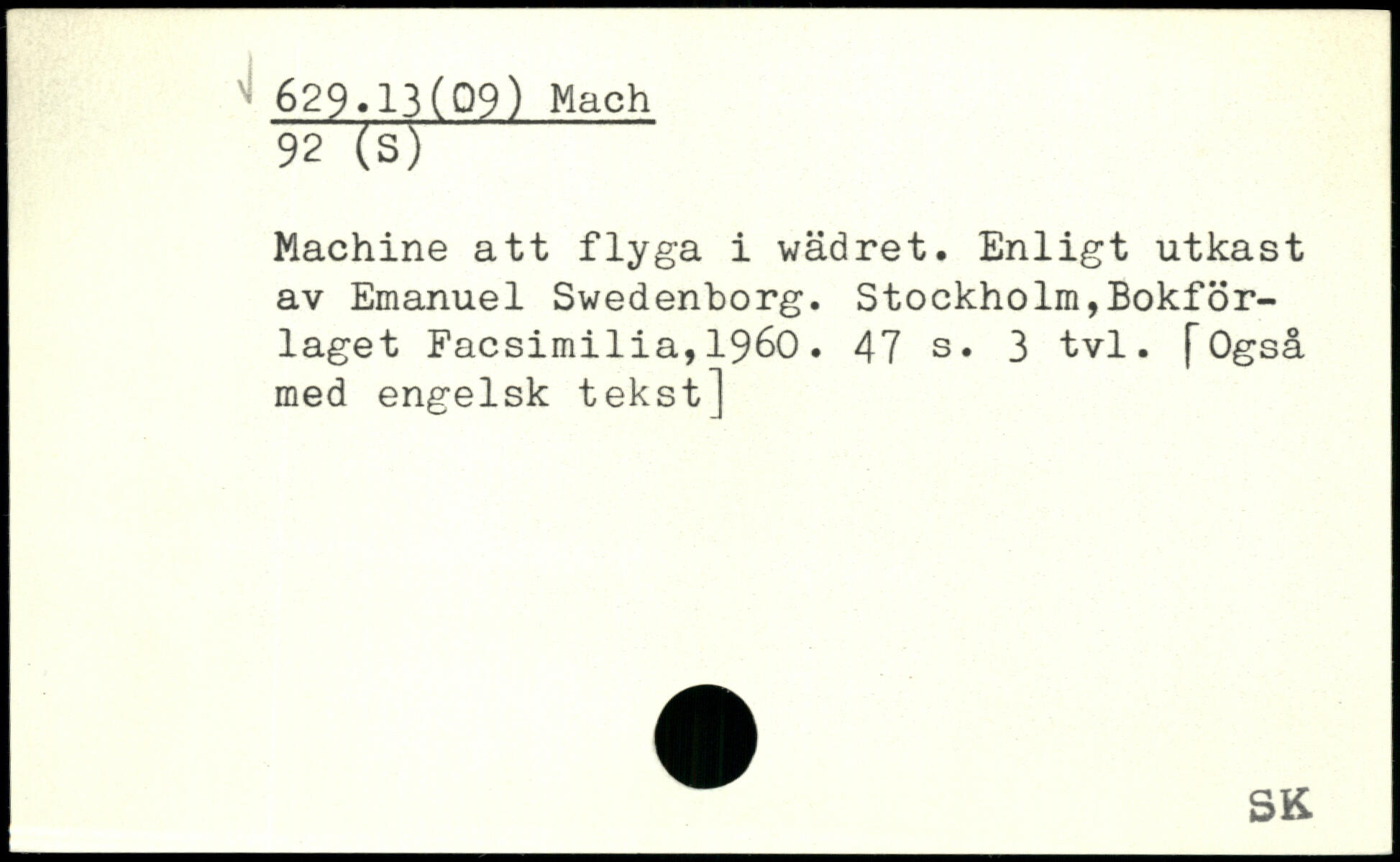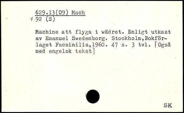 Machine att flyga i wädret. Enligt utkast j av Emanuel Swedenborg.