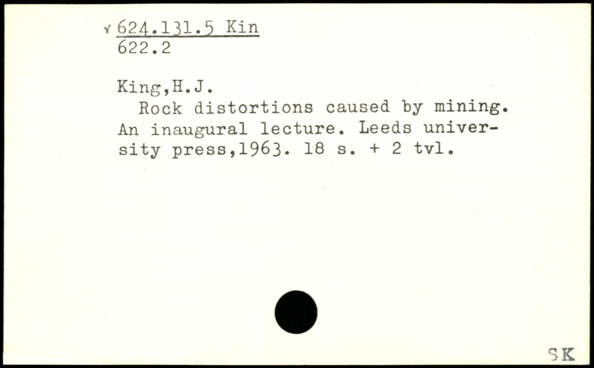 Rock distortions caused by mining. An inaugural lecture. Leeds university press,1963.