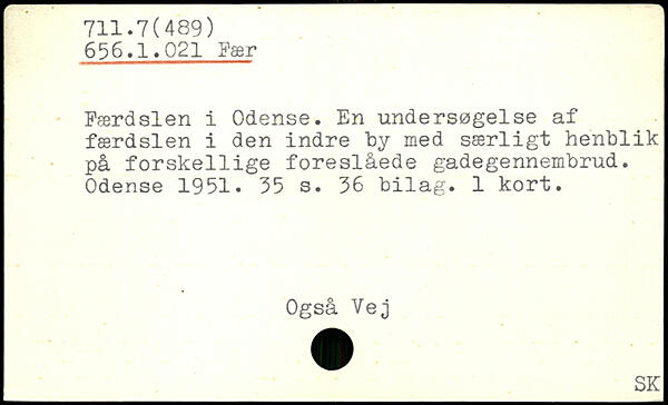 Færdslen i Odense, En undersøgelse af færdslen i den indre by med særligt henblik på forskellige foreslåede gadegennembrud. Odense 1951.