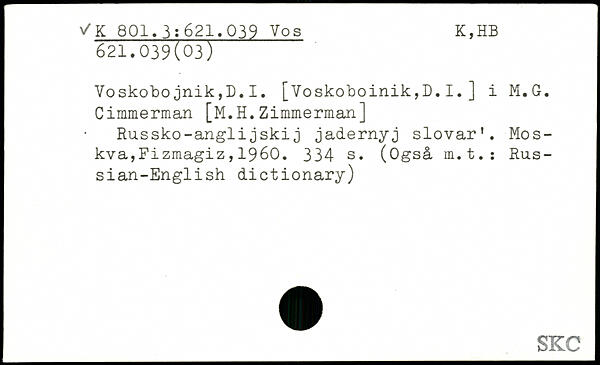 Voskobojnik,D.I. [Voskoboinik,D.I.] i M.G. Cimmerman [M.H. Zimmermaji] Russko-anglijskij jadernyj slovar’.