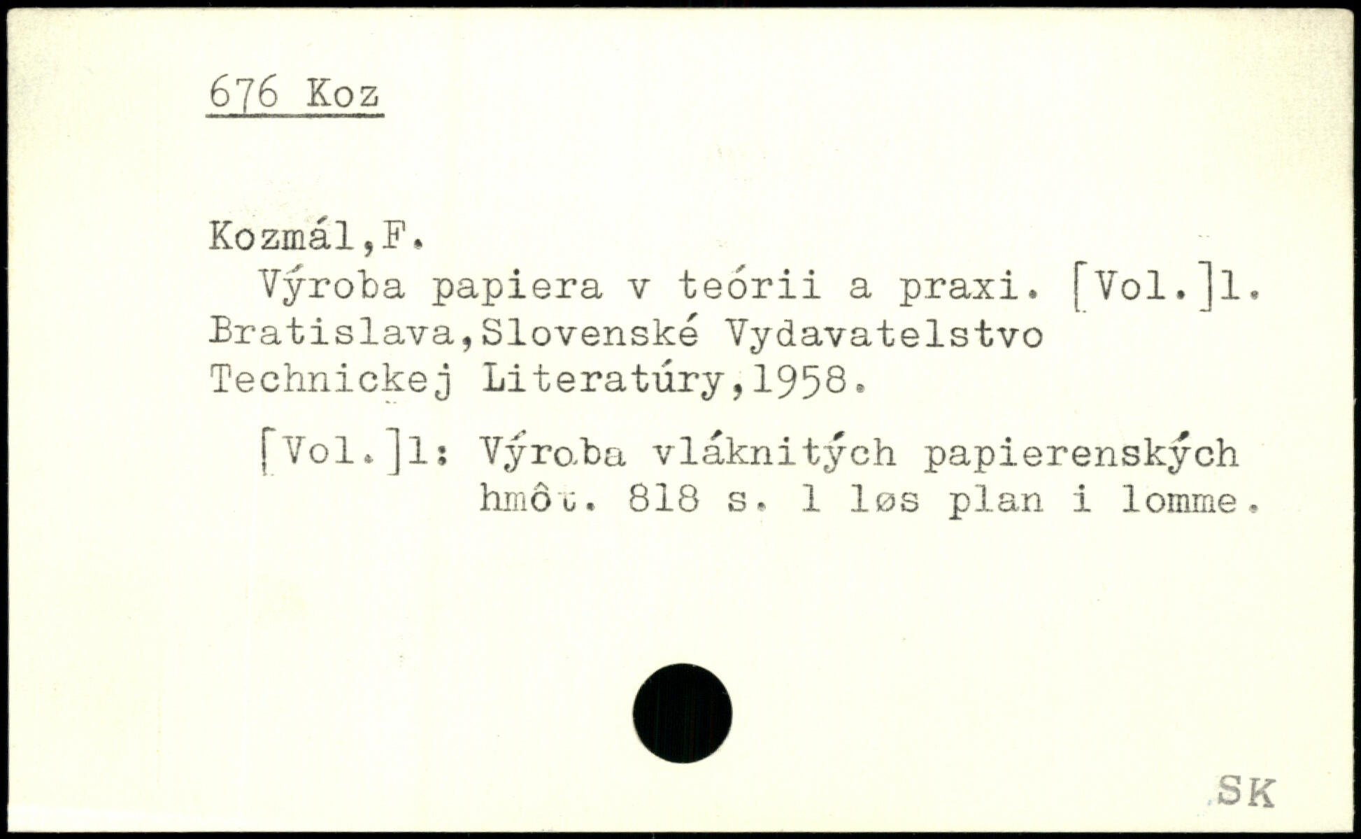 Vyroba papiera v teorii a praxi. [Vol.]l. bratislava,Slovenske Vydavatelstvo Technickej Literatury,1958.