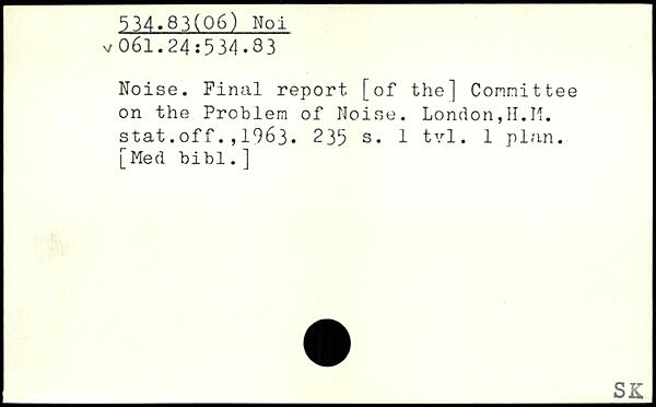 Noise. Final report [of the] Connittee on the Problem of Noise. London,II.M. stat.off.,1963.