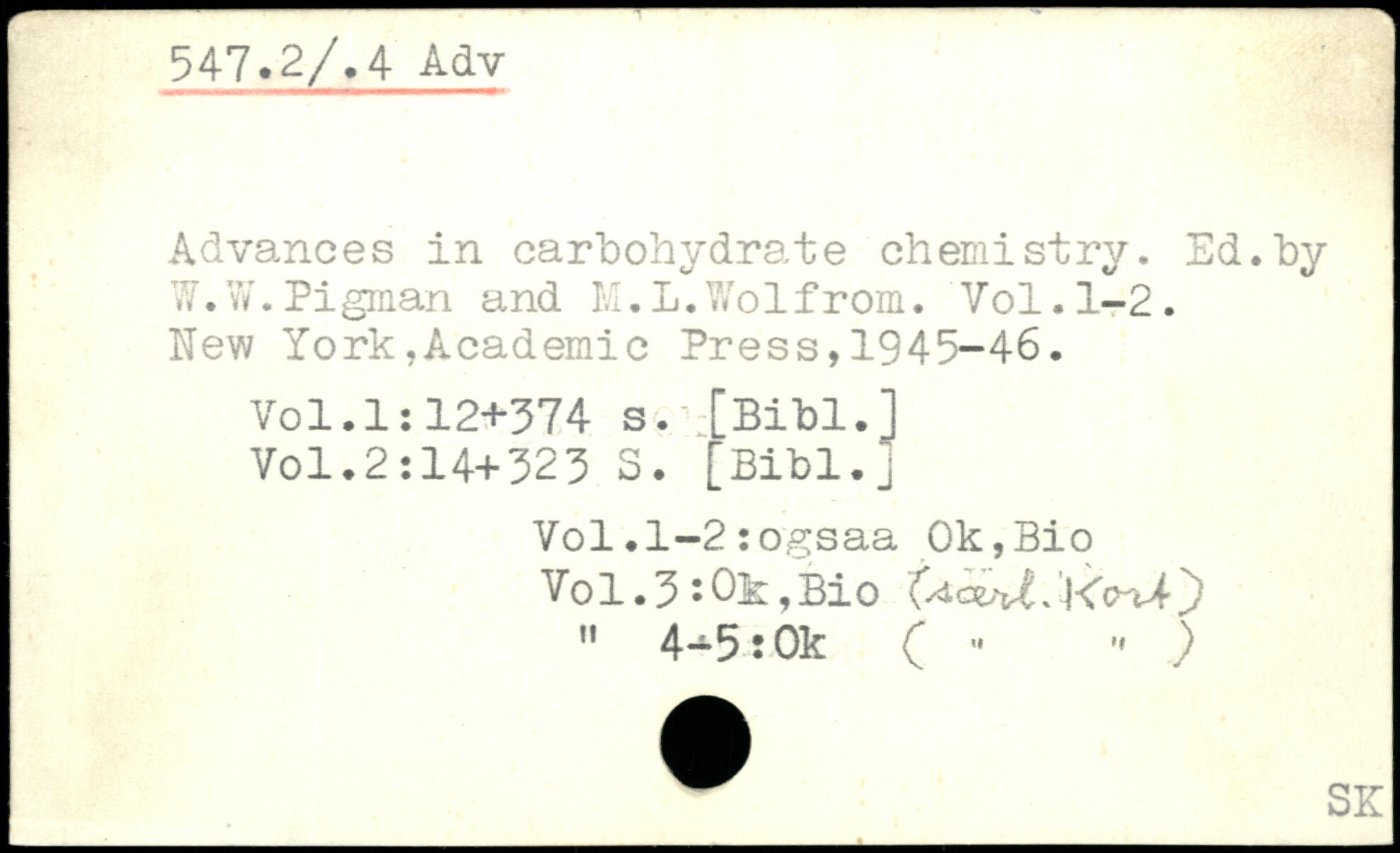 Advances in carbohydrate chemistry. Ed.by W.W.Pigman and M.L.Wolfrom.