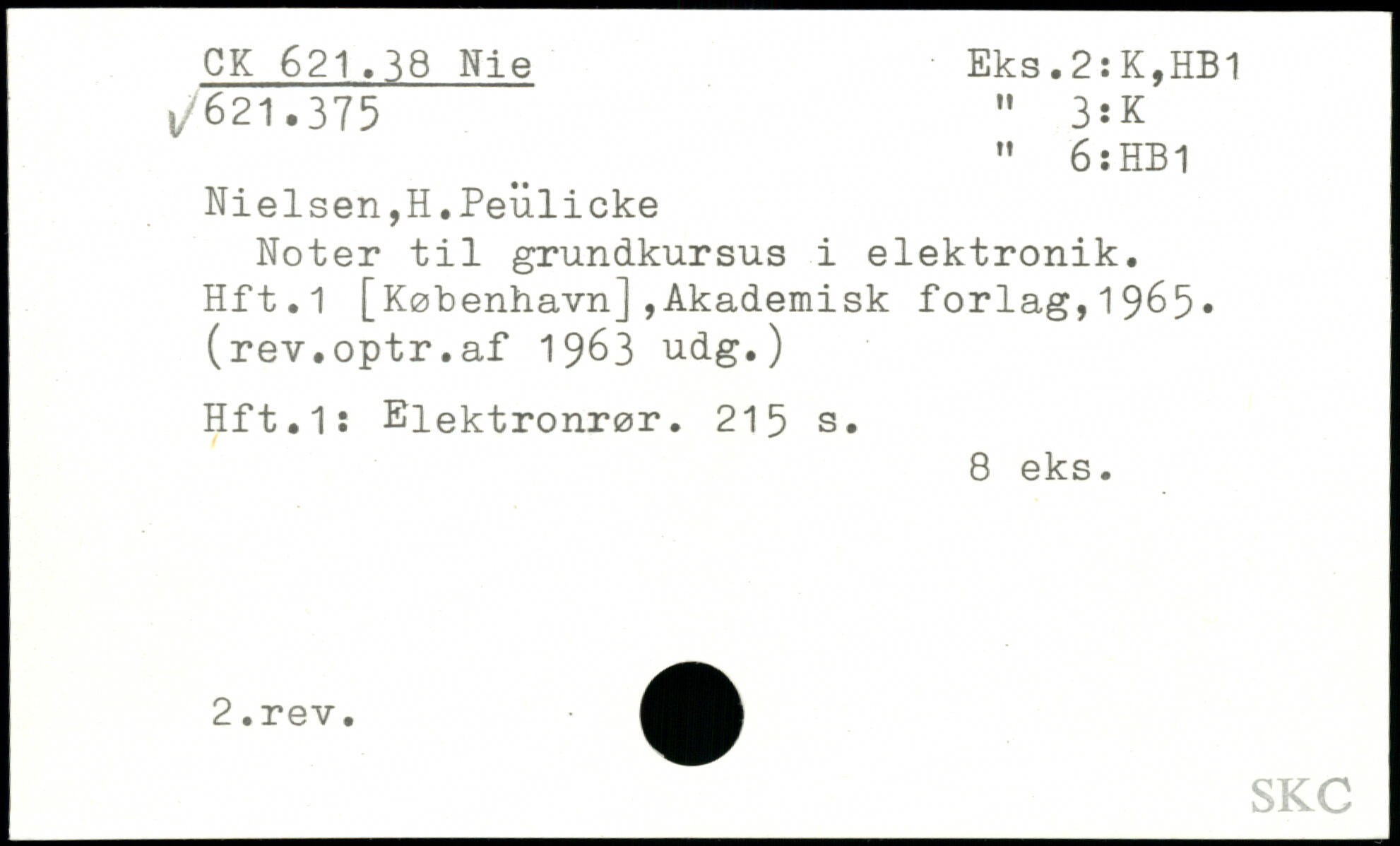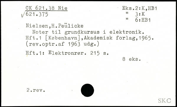 Nielsen,H.Peulicke Noter til grundkursus i elektronik. Hft.1 [København],Akademisk forlag,19^5. (rev.optr.af