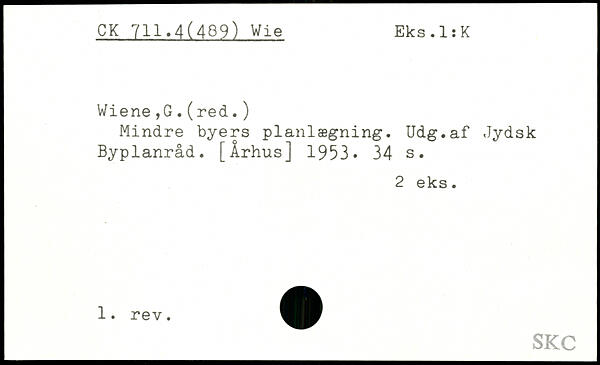 Mindre byers planlægning. Udg.af Jydsk Byplanråd. [Århus] 1953.