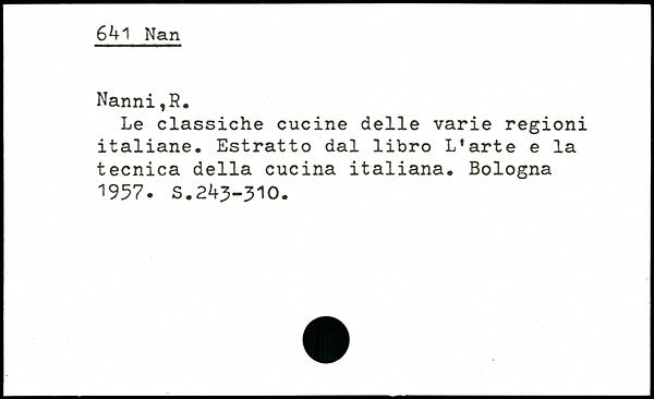 Le classiche cucine delle varie regioni italiane. Estratto dal libro L’arte e la tecnica délia cucina italiana. Bologna 1957. s.2^3-310.
