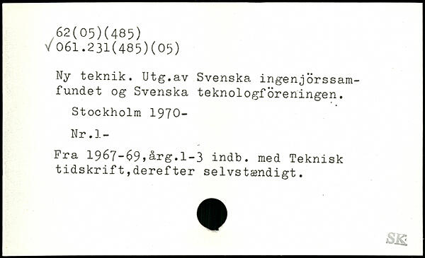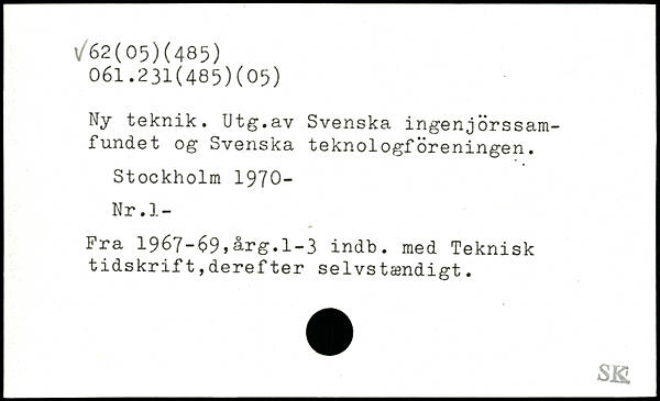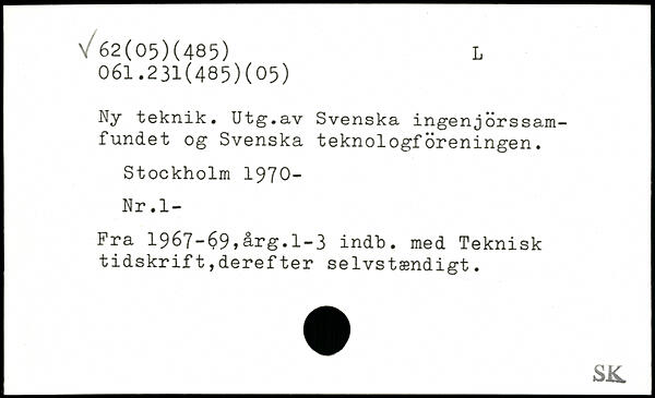 Ny teknik. Utg.av Svenska ingenjörssam-fundet og Svenska teknologföreningen.