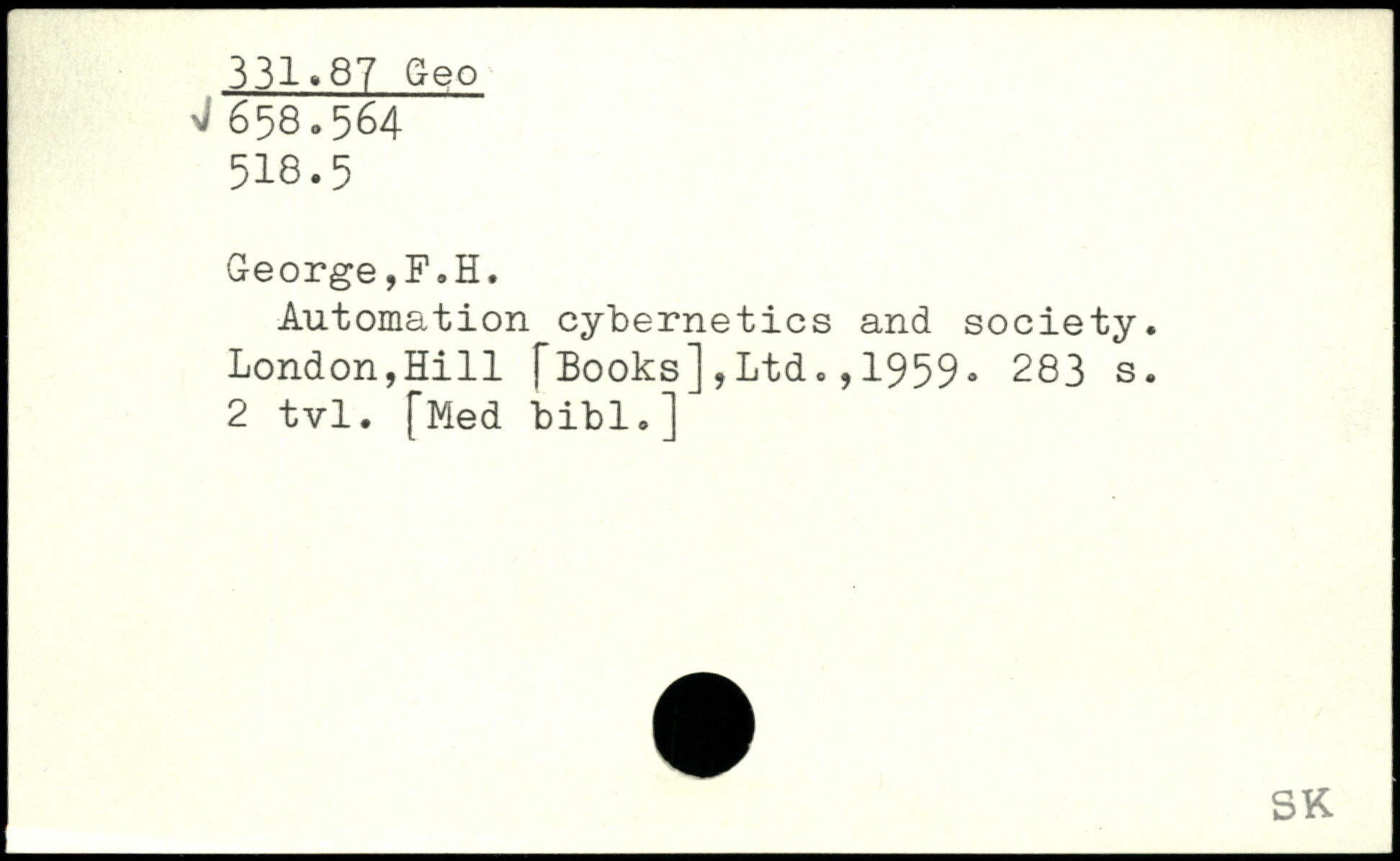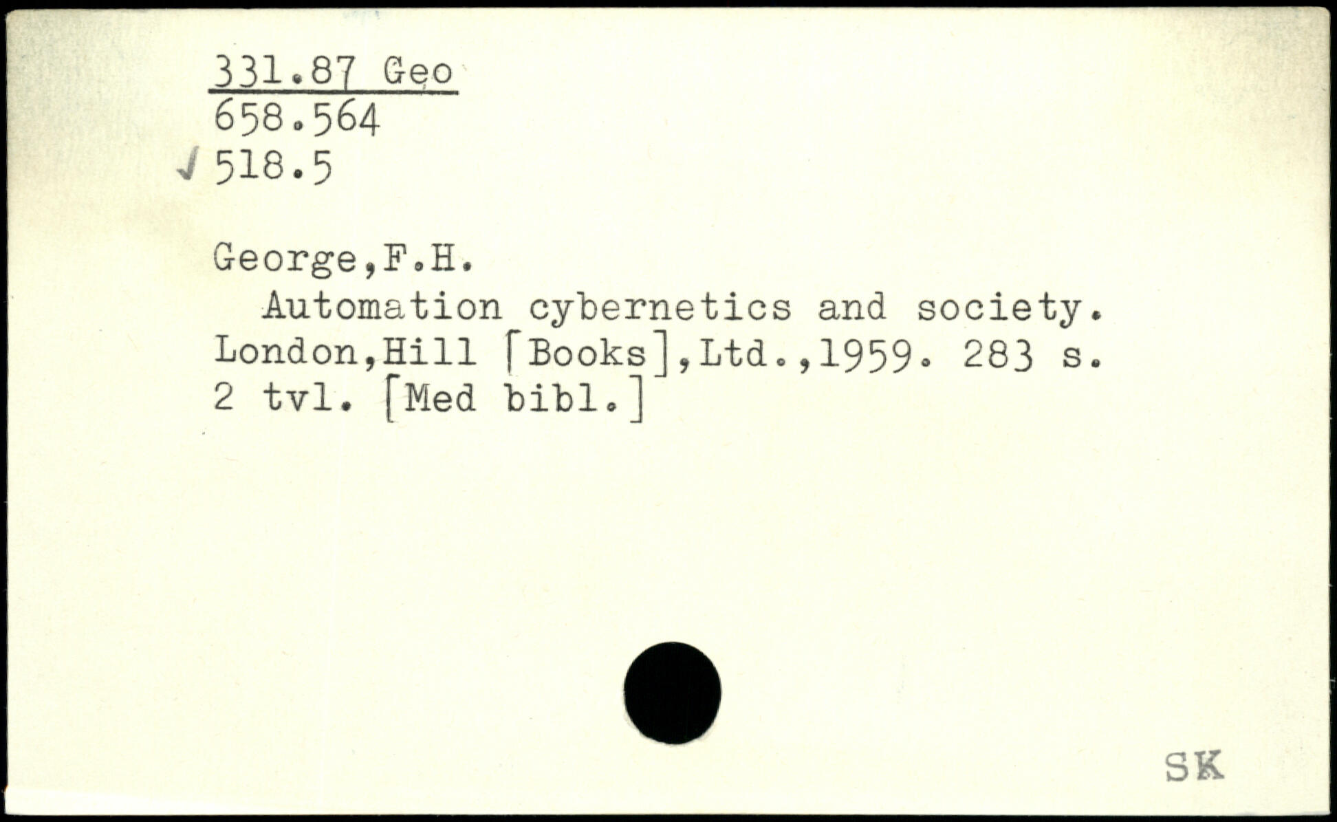 Automation cybernetics and society. London,Hill [Books],Ltd1959-