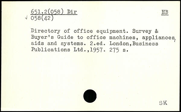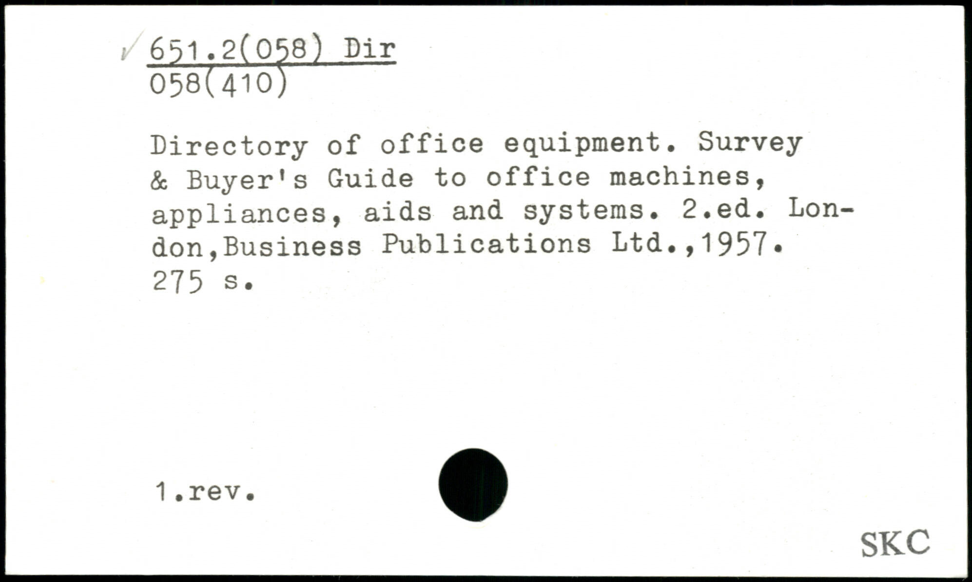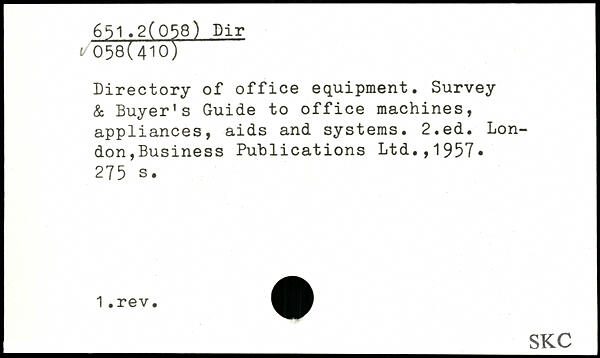 Directory of office equipment. Survey & Buyer's Guide to office machines, appliances; aids and systems.