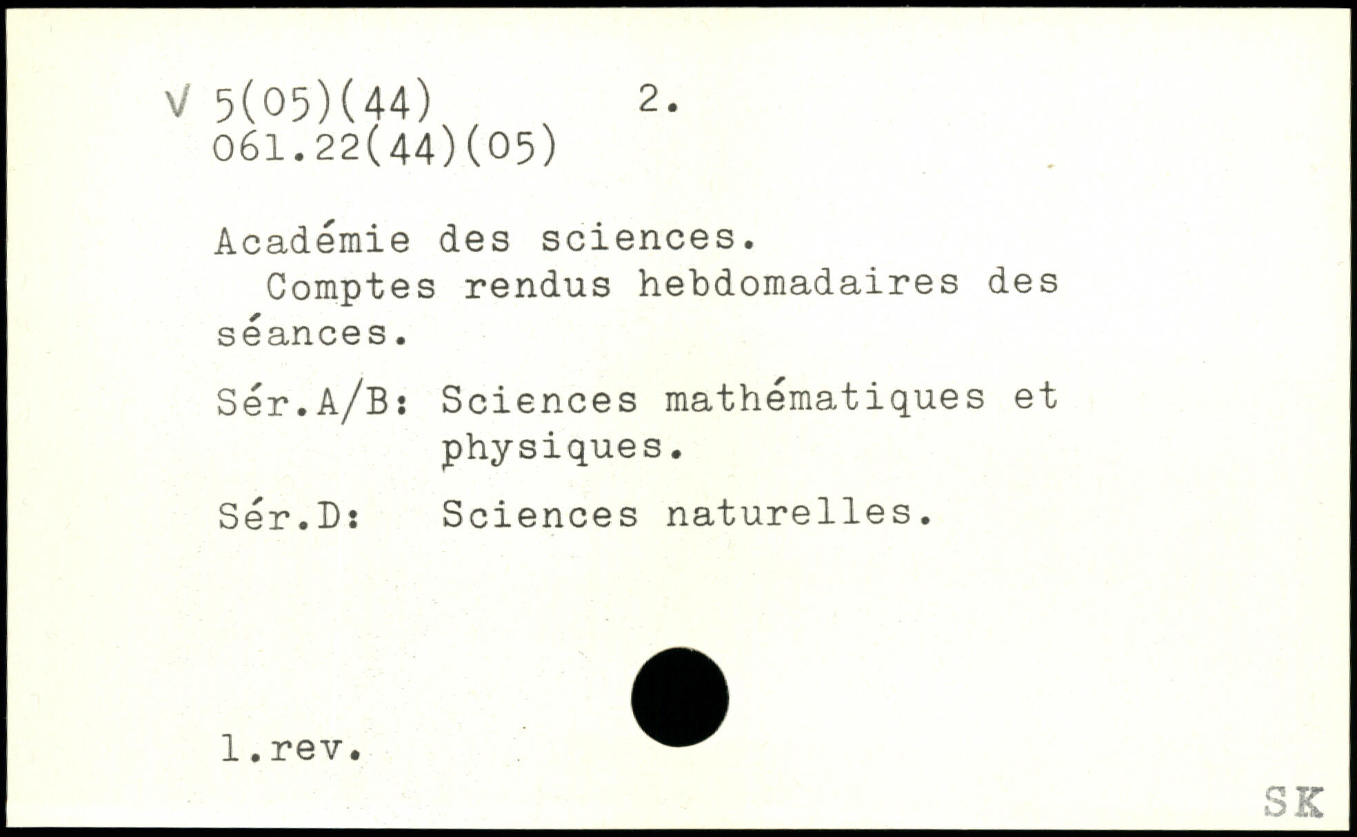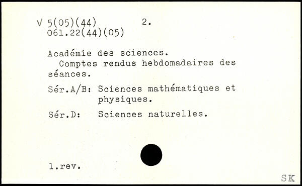 Académie des sciences. Comptes rendus hebdomadaires des séances. Sér.A/B: Sciences mathématiques et physiques. Sér.D: Sciences naturelles.