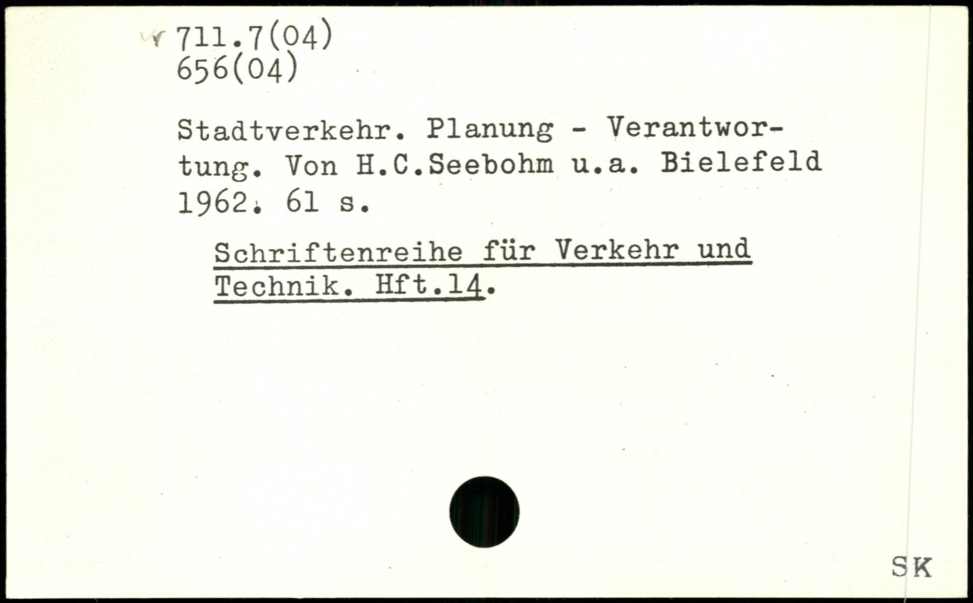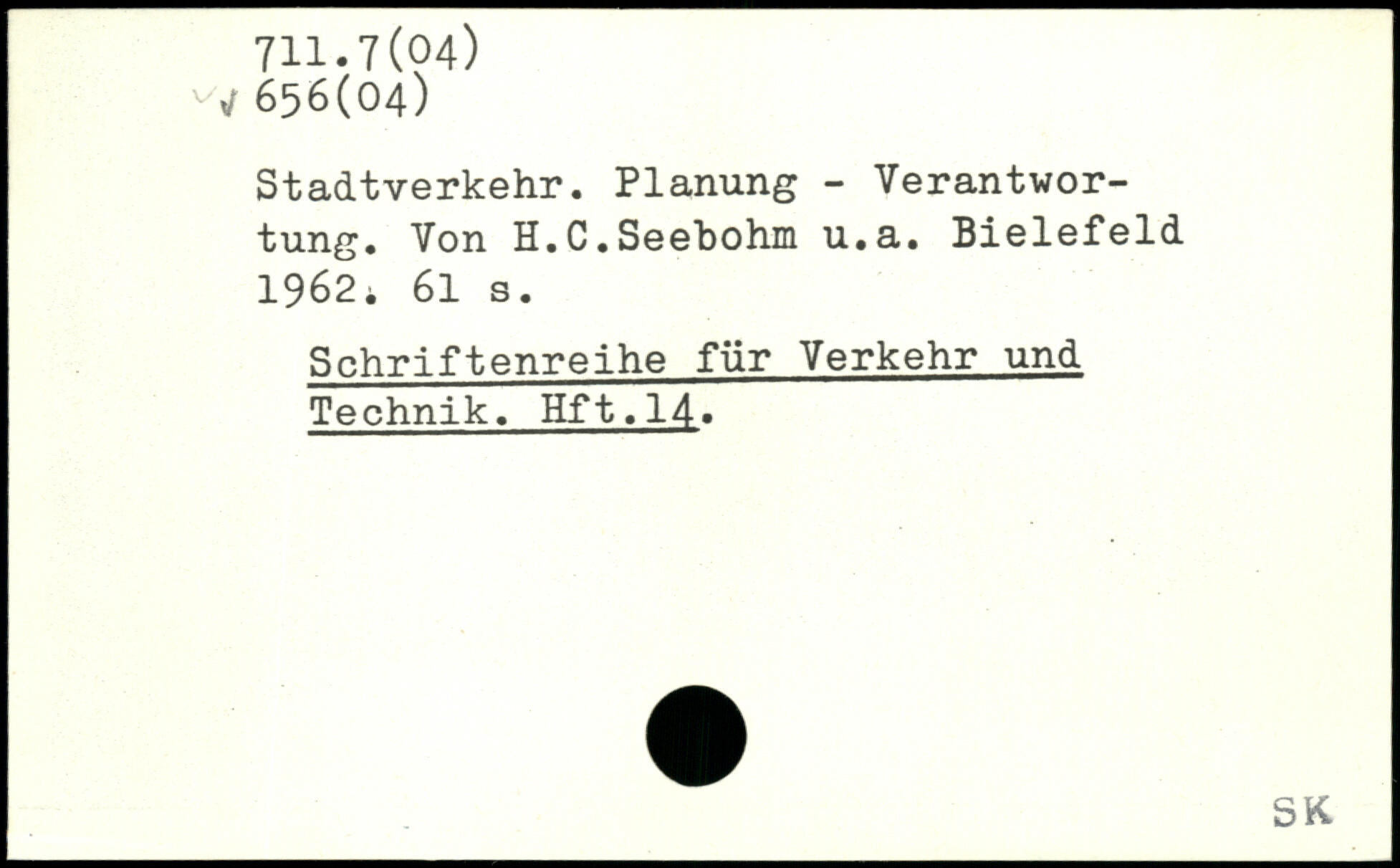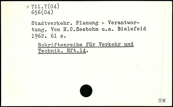 Stadtverkehr. Planung - Verantwortung. Von H.C.Seehohm u.a. Bielefeld 1962i
