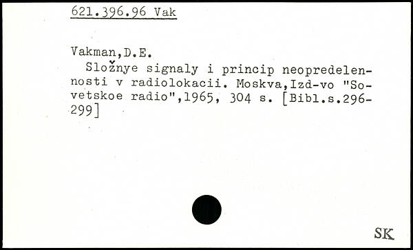 Sloznye signaly i princip neopredelen-nosti v radiolokacii. Moskva,Izd-vo "So-vetskoe radio”,1965