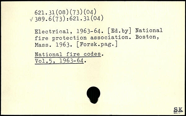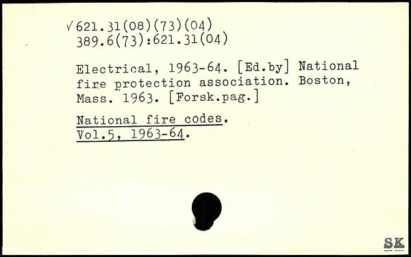 Electrical, 1963-64. [Ed.by] National fire protection association. Boston, Mass. 1963. [Forsk.pag.] National fire codes.