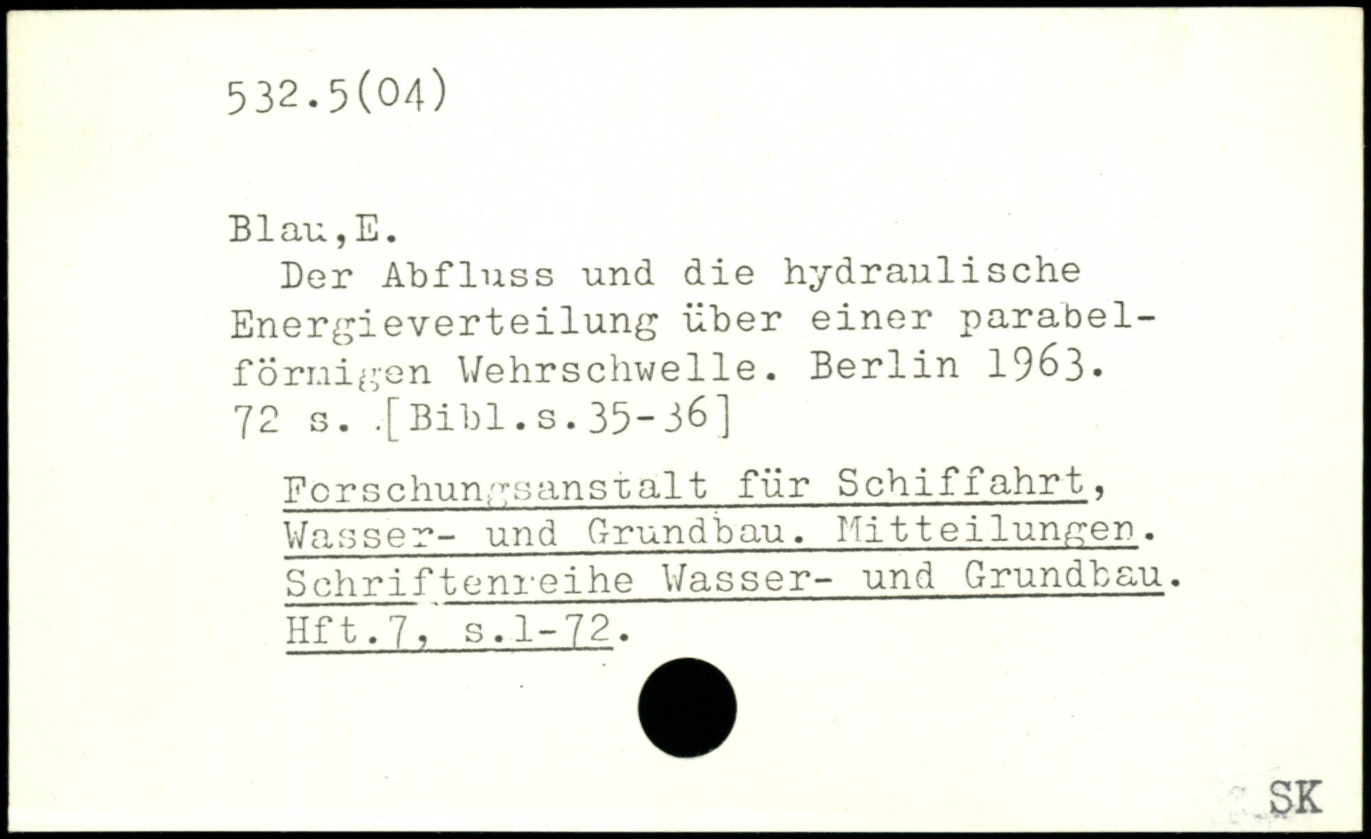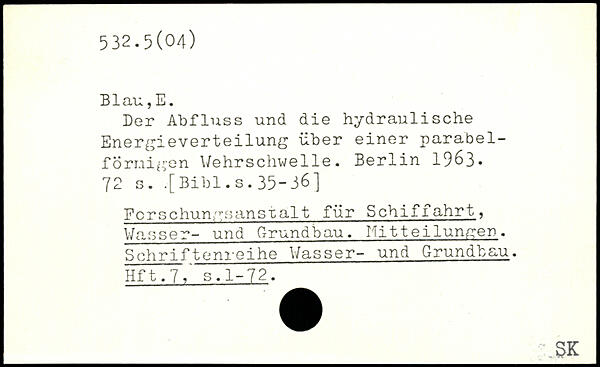 Der Abfluss und die hydraulische EnergieVerteilung über einer parabel-f Örnigen Wehrschwelle.
