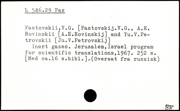 Fastovskii,V.G. [Fastovskij.V.G., A.E. Rovinskii [A.E.Rovinskij] and Yu.V.Pe-trovskii [Ju.V.Petrovskij] Inert gases. Jerusalem,Israel program for scientific translations,1967.