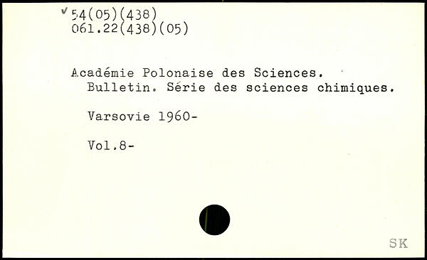 Académie Polonaise des Sciences. Bulletin. Série des sciences chimiques. Varsovie 1960-