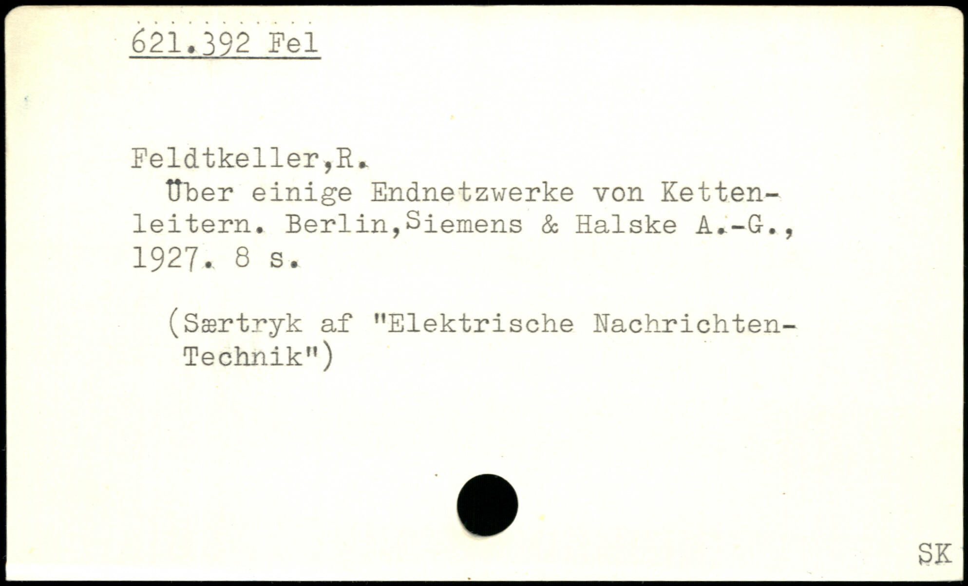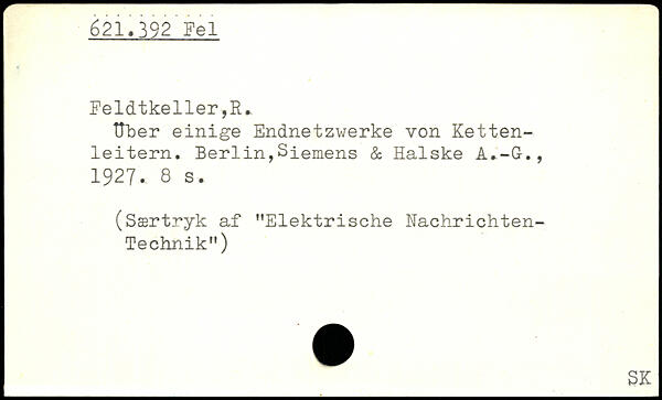 Uber einige Endnetzwerke von Kettenleitern, Berlin,Siemens & Halske A,-G., 1927..