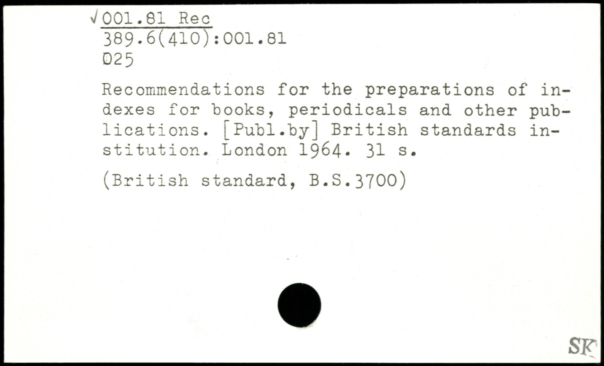 Recommendations for the preparations of indexes for books, periodicals and other publications.