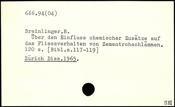Über den Einfluss chemischer Zusätze auf das Fliessverhalten von Zementrohschlämmen.