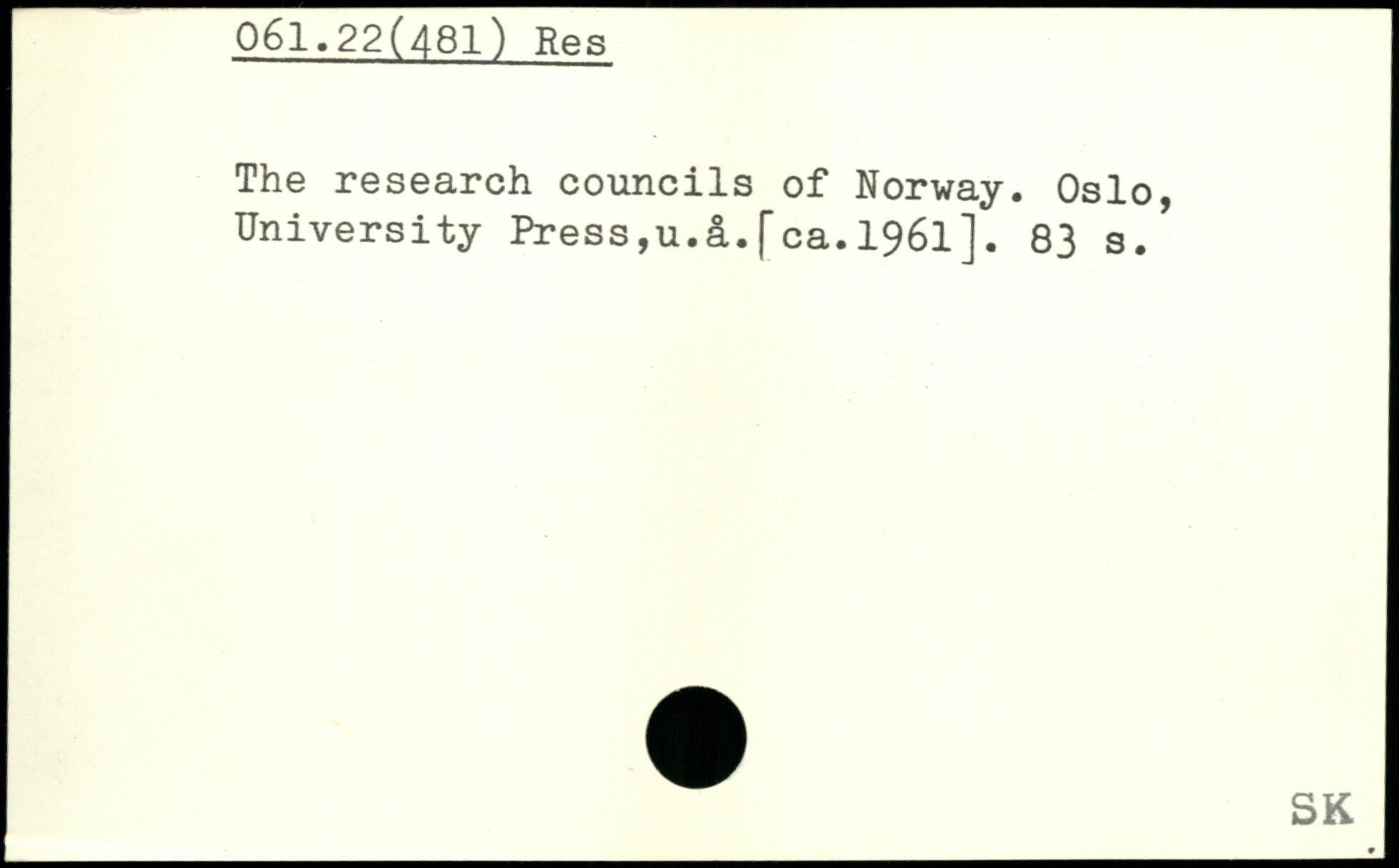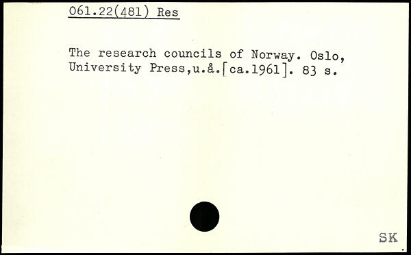 The research councils of Norway. Oslo, University Press,u.&.[ca.1961].