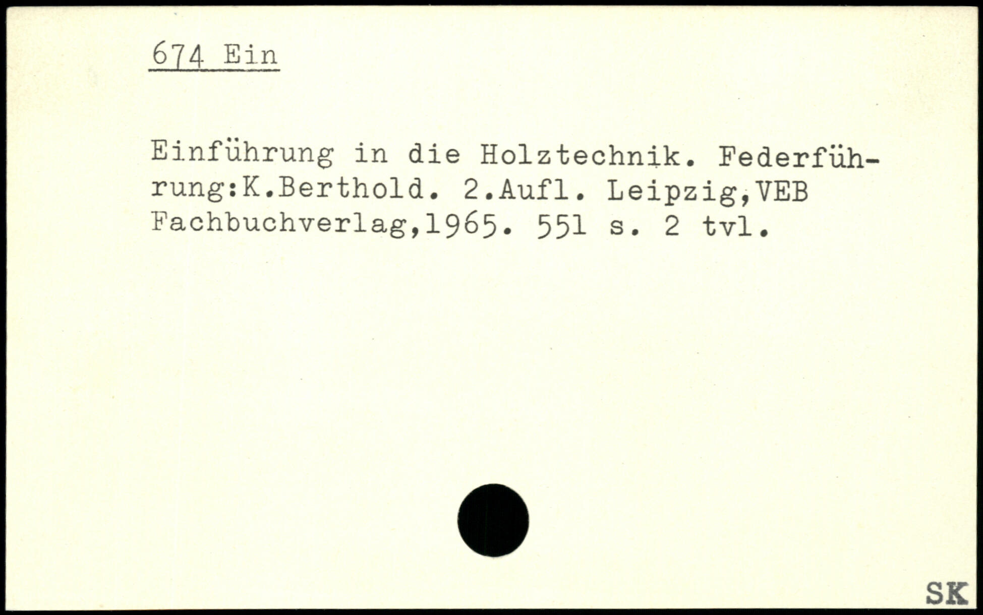 Einführung in die Holztechnik. Federfüh-rung:K.Berthold.
