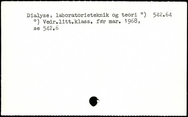 Dialyse, laboratorieteknik og teori .) 542.64 .) Vedr.litt.klass. før mar. 1968, se 542.6
