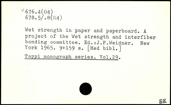 Wet strength in paper and. paperboard. A project of the Wet strength and interfiber bonding committee. Ed.:J.P.Weidner.