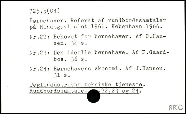 Børnehaver. Referat af rundbordssamtaler på Hindsgavl slot 1966.