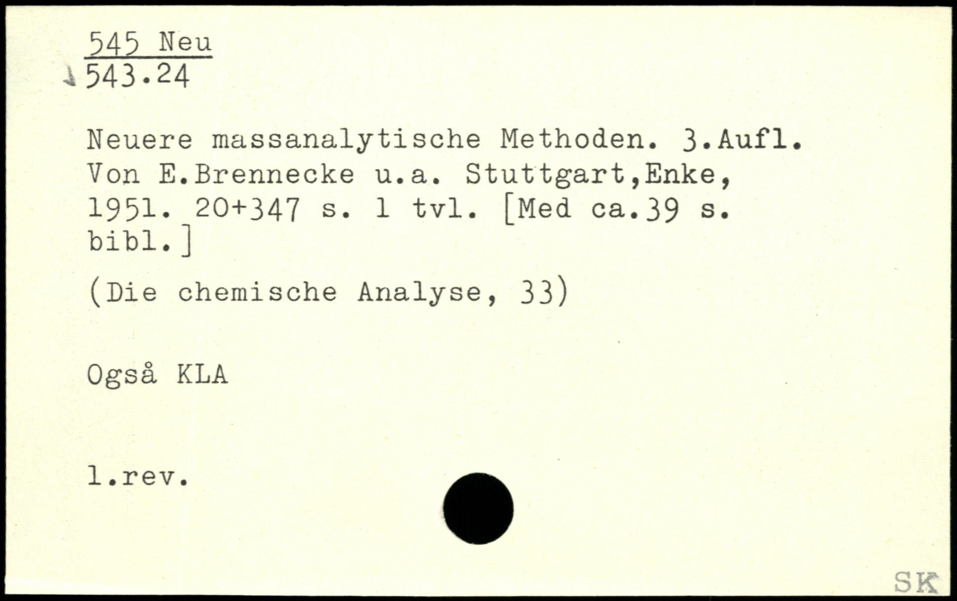 Neuere massanalytische Methoden. ß.Aufl. Von E.Brennecke u.a.