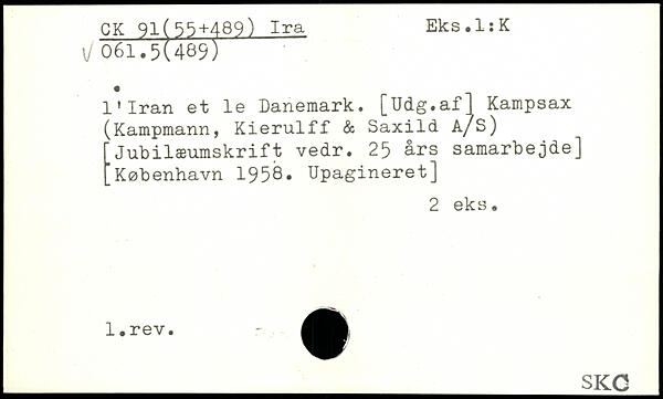 l1Iran et le Danemark. [Udg.afl Kampsax (Kampmann, Kierulff & Saxild A/S) fJubilæumskrift vedr. 25 års samarbejde]