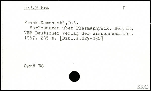 Vorlesungen über Plasmaphysik. Berlin, VEB Deutscher Verlag der Wissenschaften, 1967.