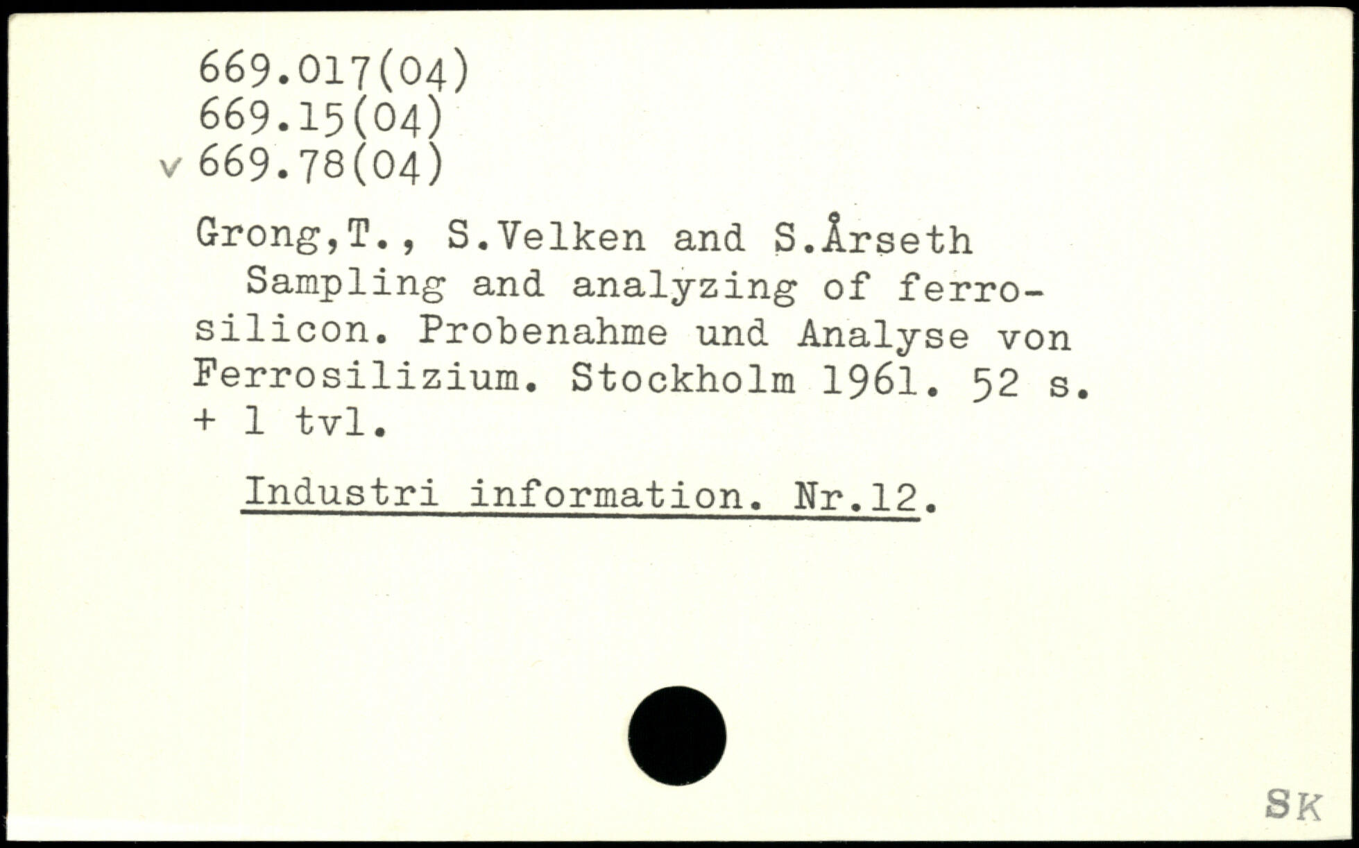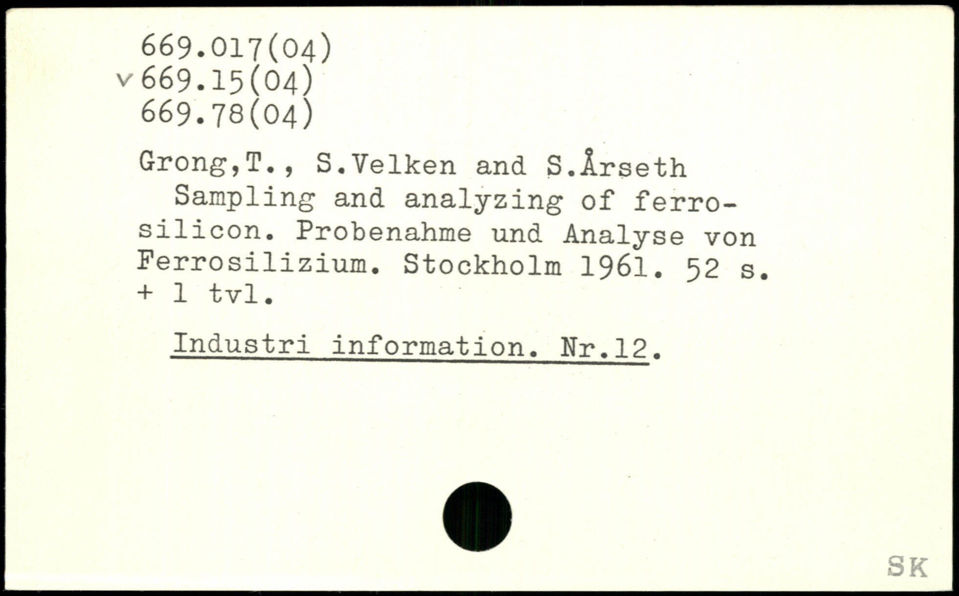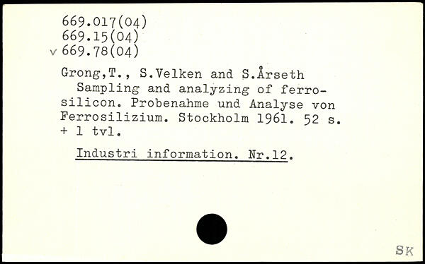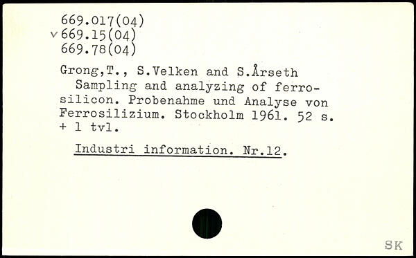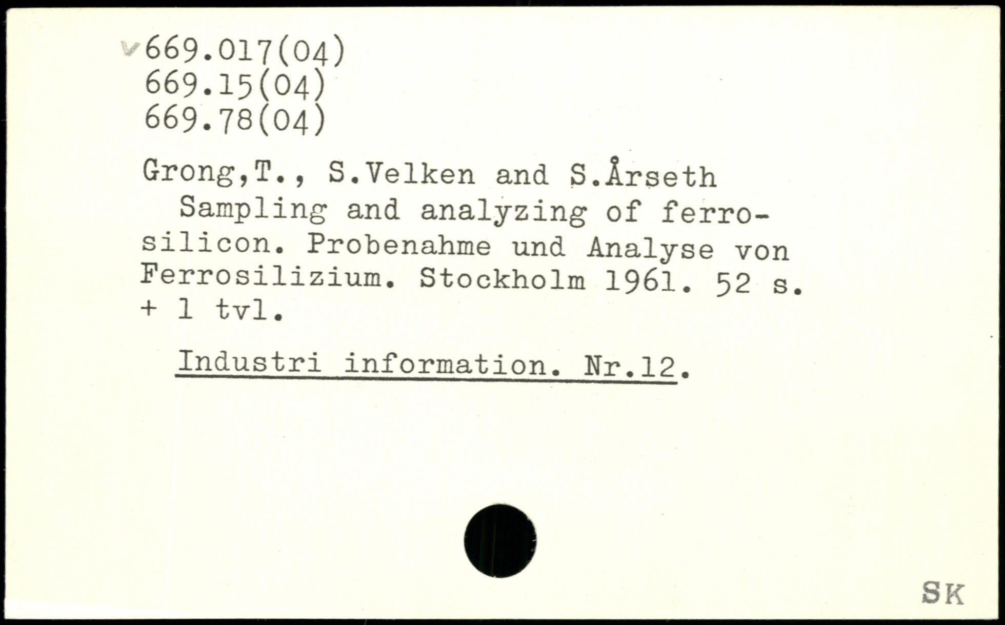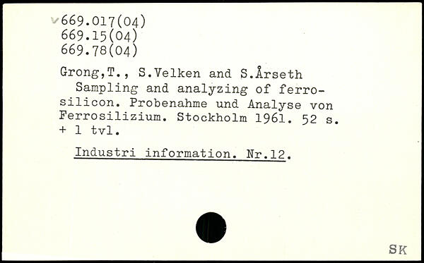 Grong,T., S.Velken and S.Arseth Sampling and analyzing of ferro-silicon. Probenahme und Analyse von Ferrosilizium.