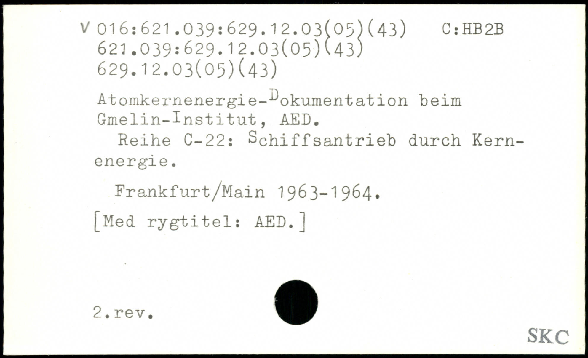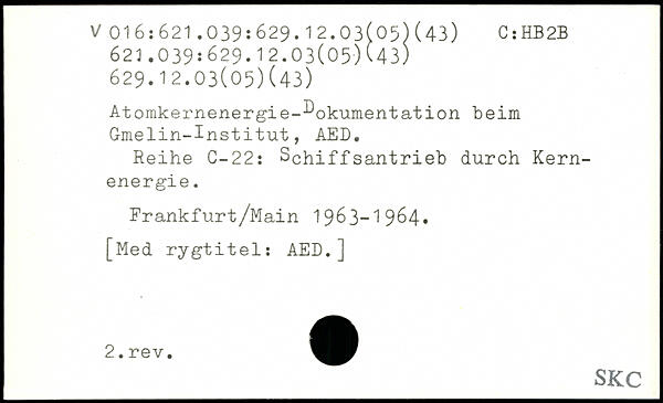 Atomkernenergie-Dokumentation beim Gmelin-Institut, AED. Reihe C-22: Schiffsantrieb durch Kernenergie. Frankfurt/Main 1963-1964,