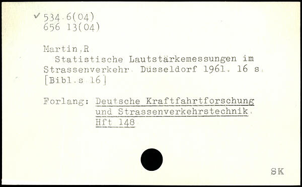 Martin.R Statistische Lautstärkemessungen im Strassenverkehr Düsseldorf 1961