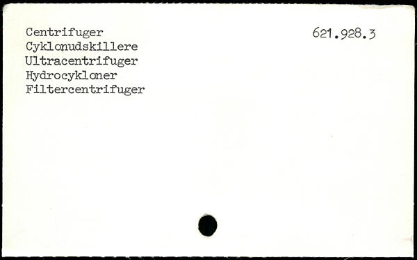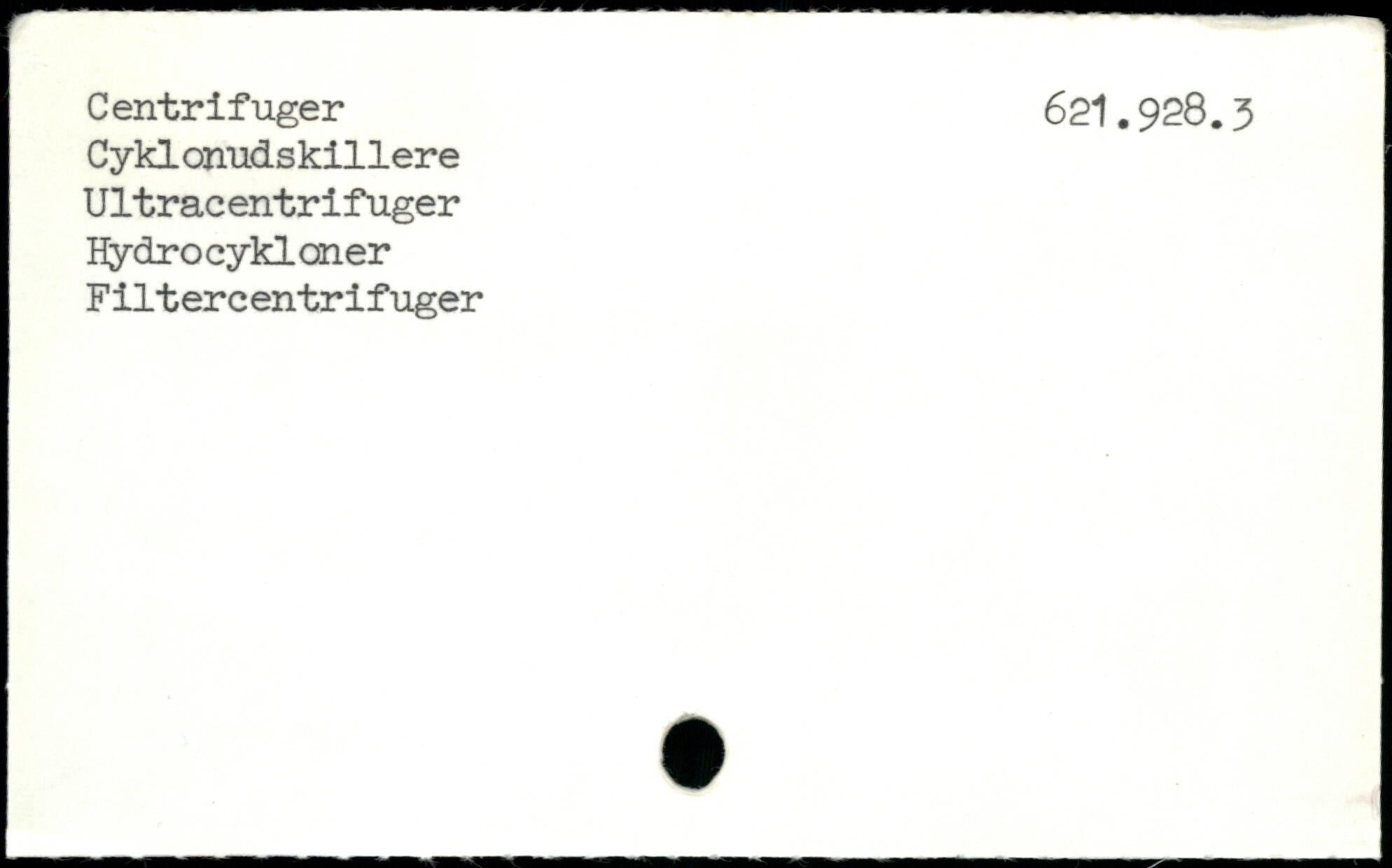 p ............................. Centrifuger 621.928.3 Cyklonudskillere Ultracentrifuger Hydrocykloner Filtercentrifuger